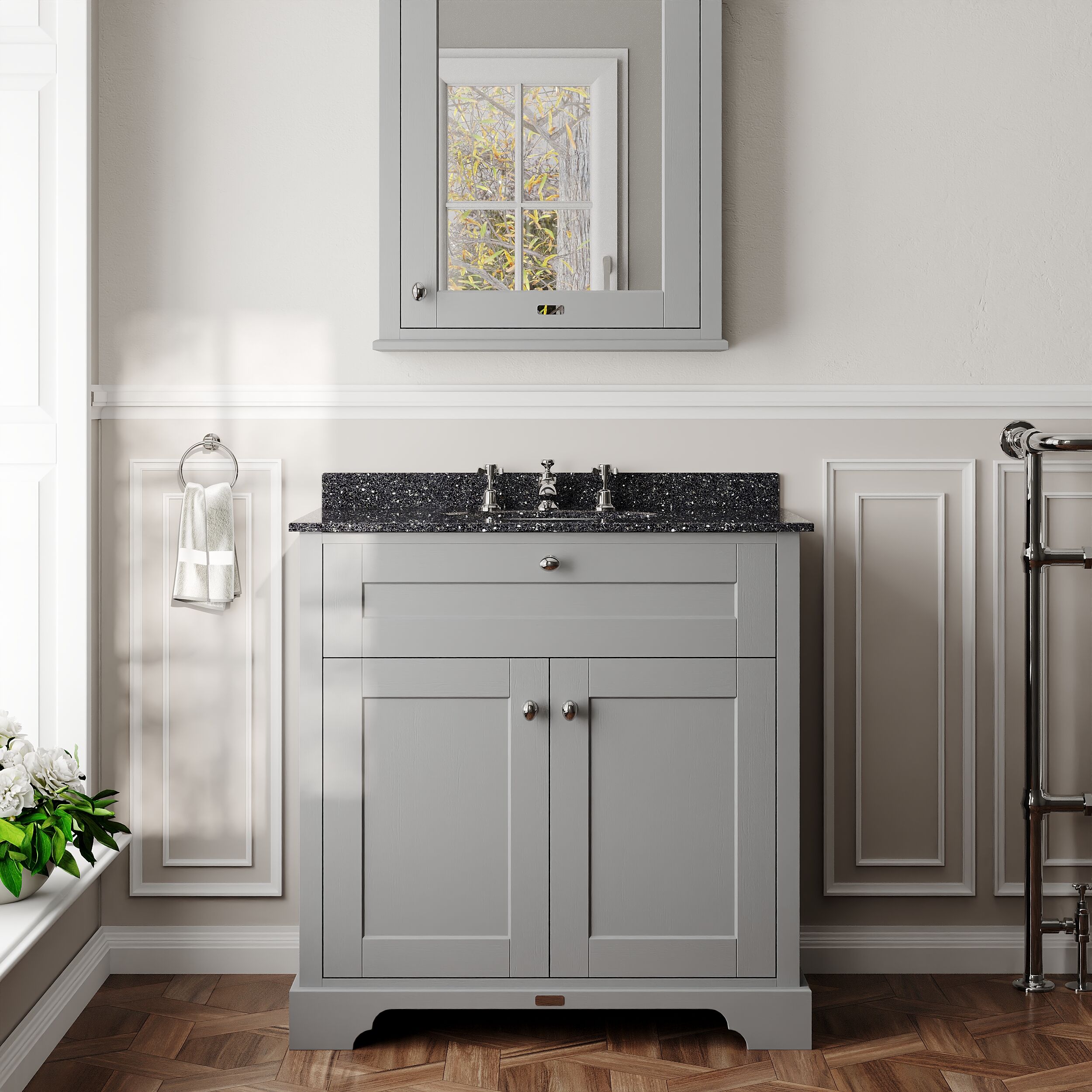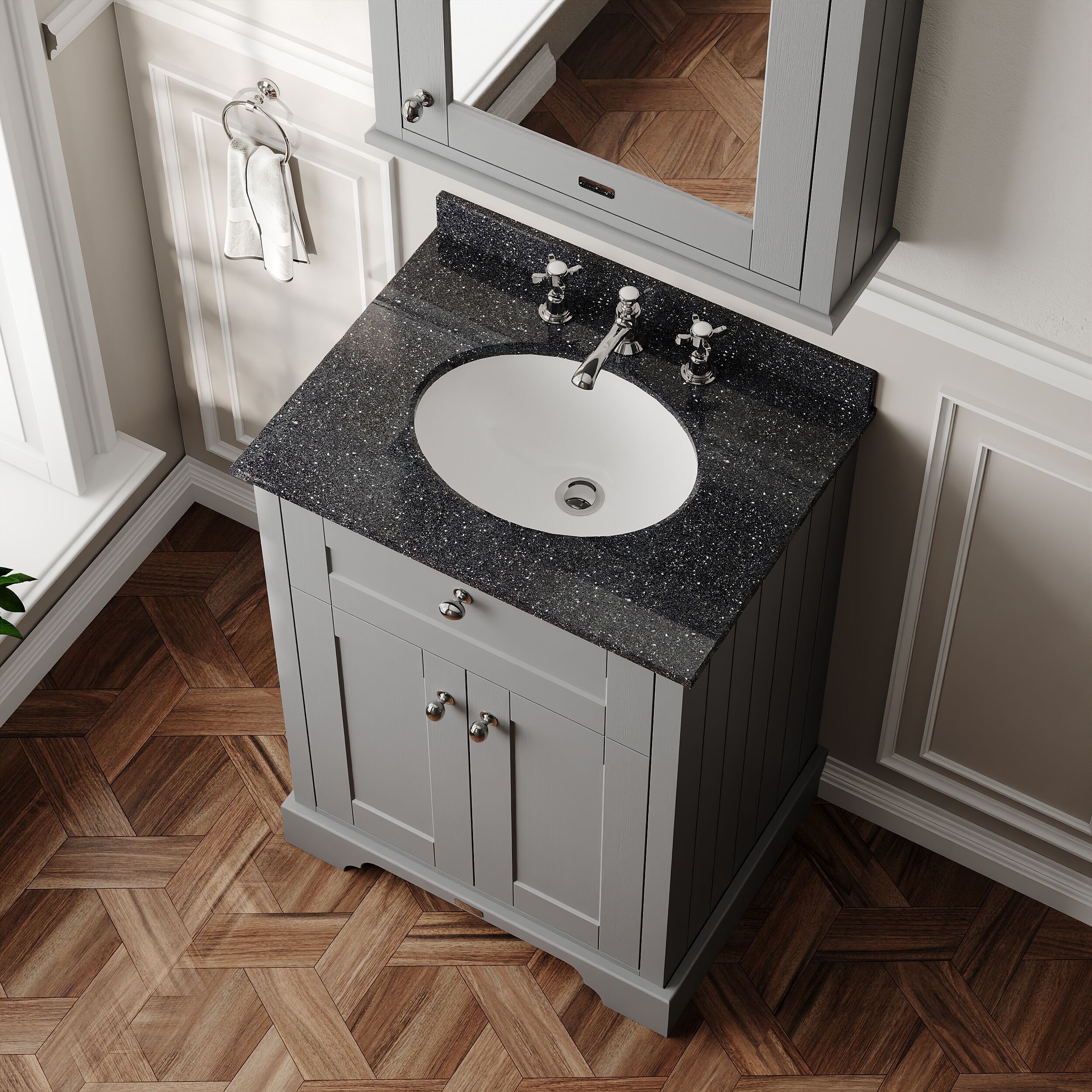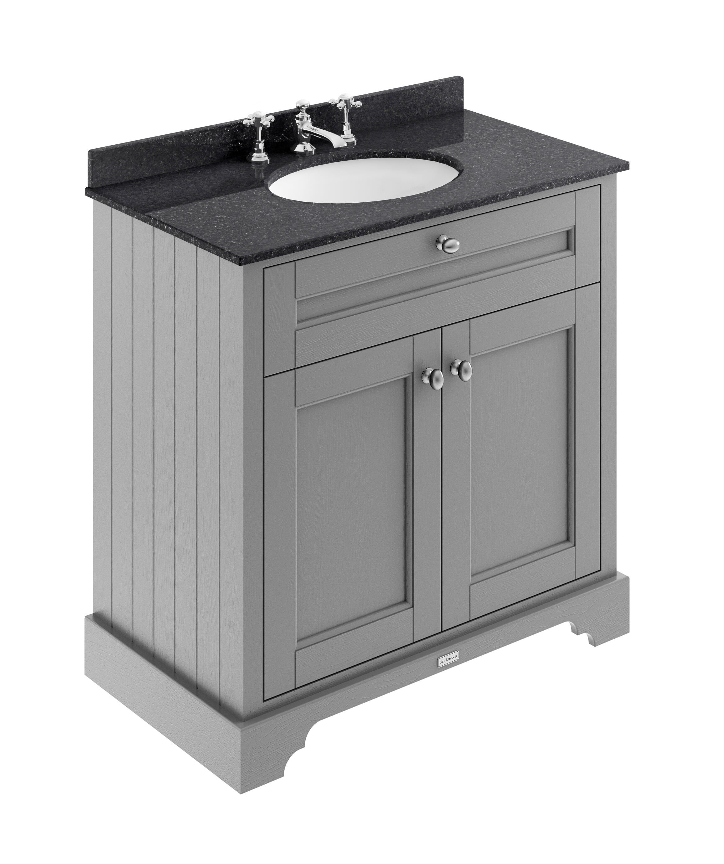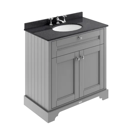 Old London Floor Standing 2 Door Vanity Unit with 3 Tap Hole Black Marble Top 800mm - Storm Grey