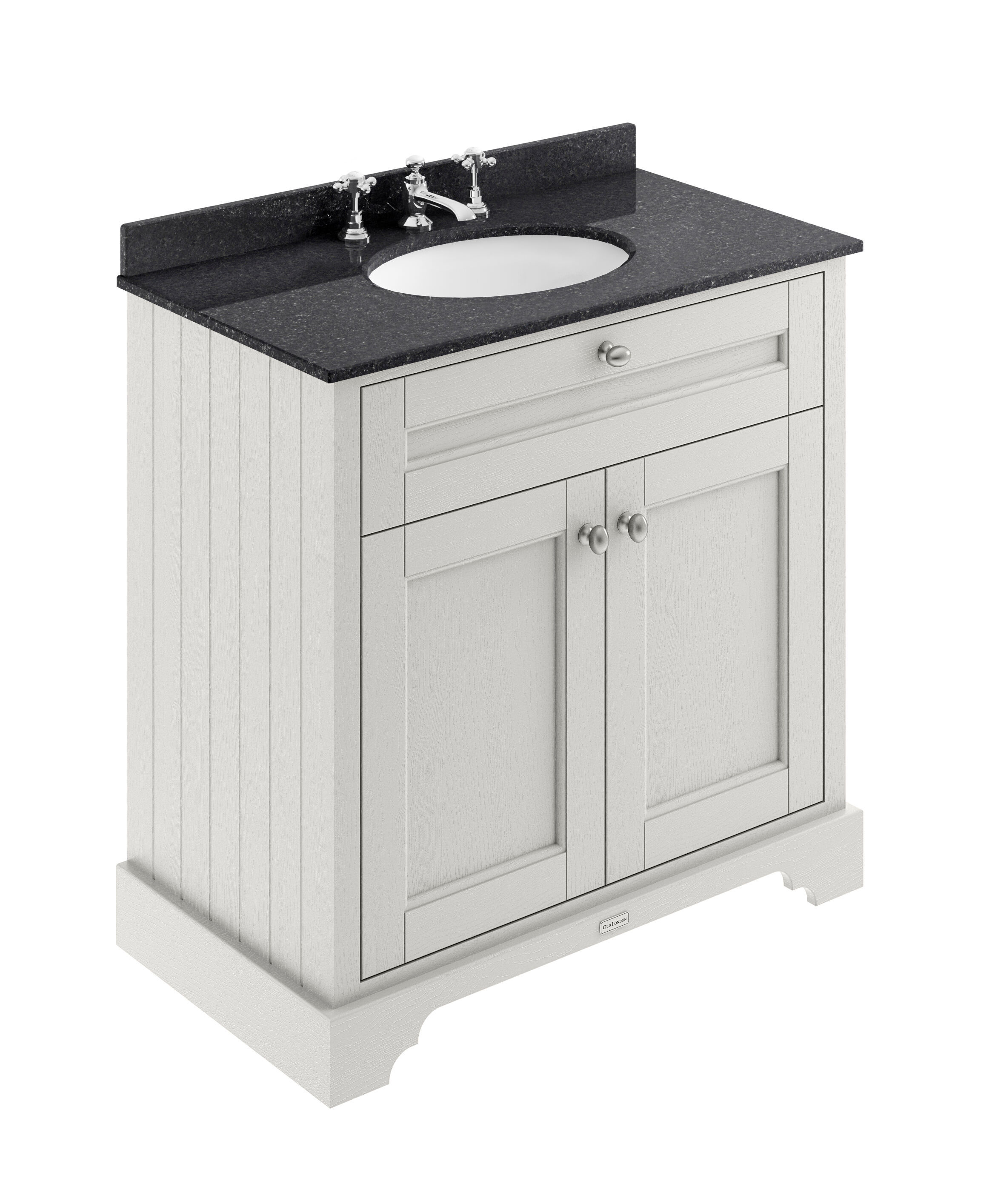 Hudson Reed Old London 820mm Floor Standing Vanity Unit With 3 Tap Hole Black Marble Top Basin