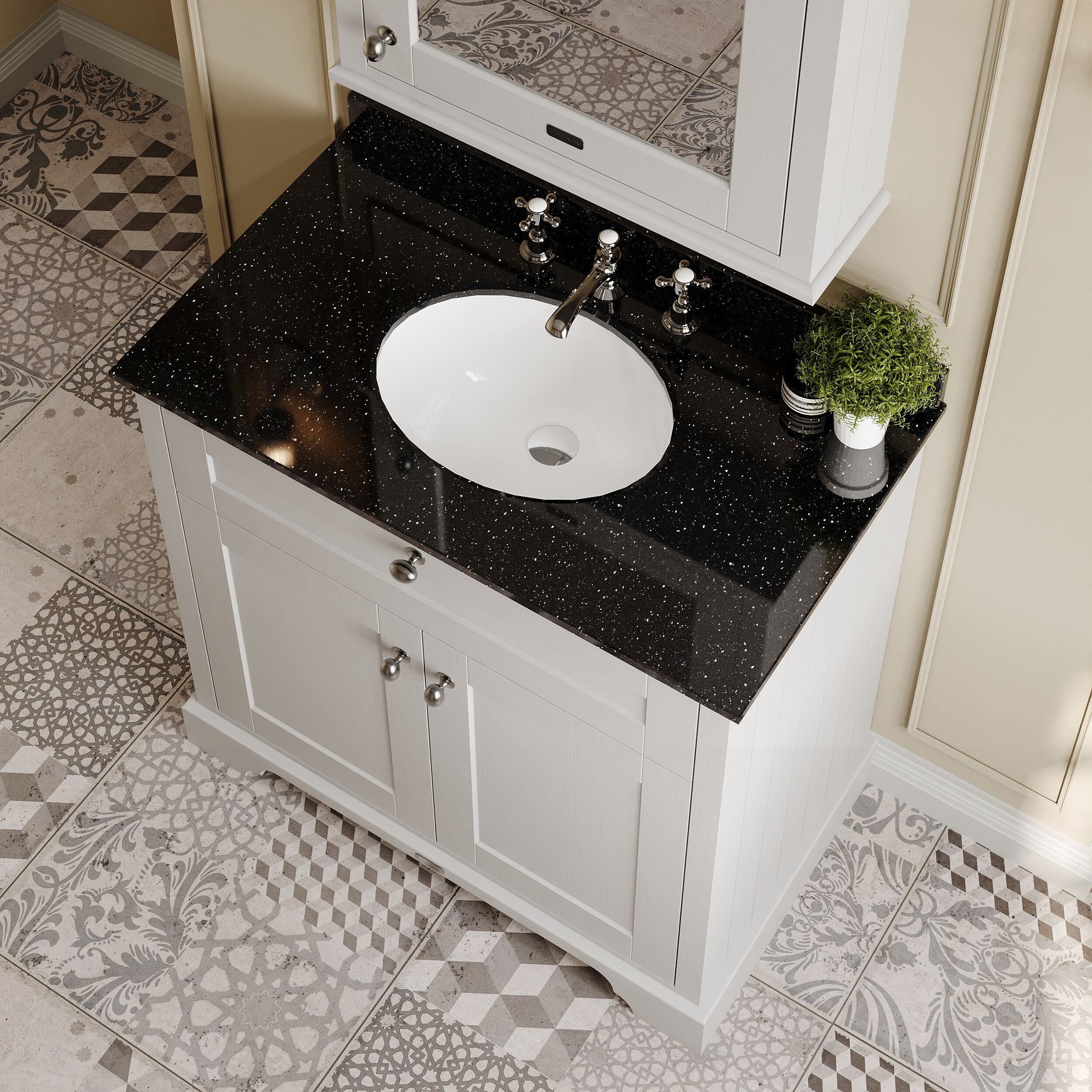Old London Floor Standing 2 Door Vanity Unit with 3 Tap Hole Black Marble Top 800mm - Timeless Sand