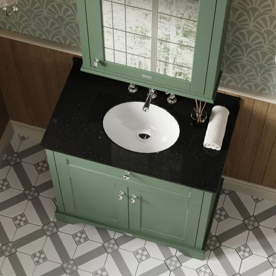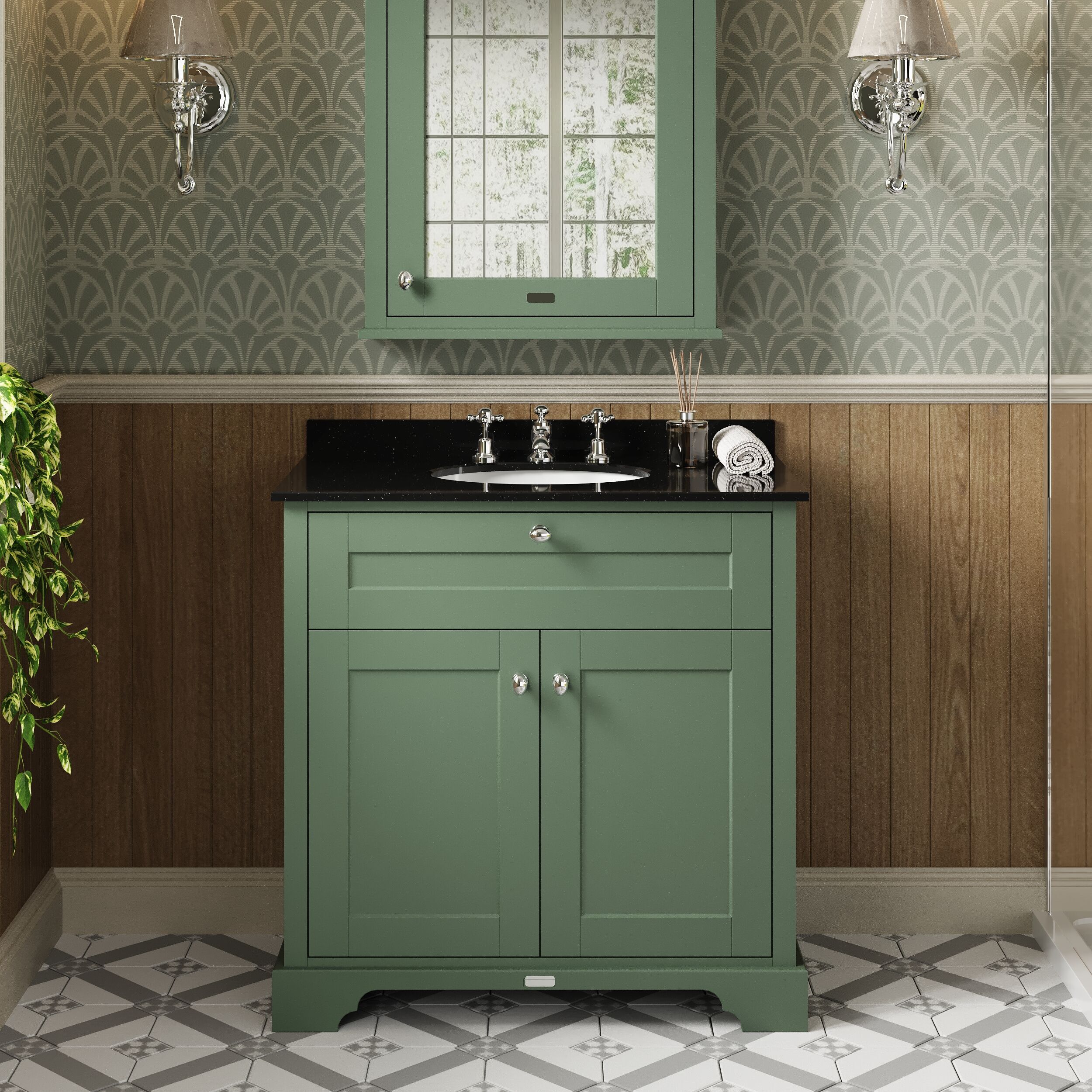 Old London Floor Standing 2 Door Vanity Unit with 3 Tap Hole Black Marble Top 800mm - Hunter Green