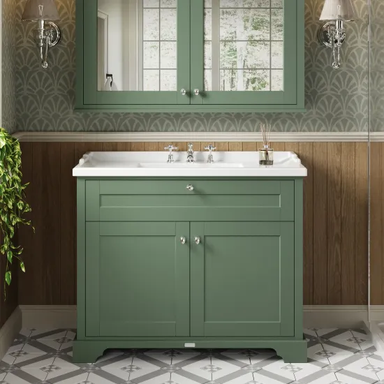 Hudson Reed Old London 1000mm Hunter Green Floor Standing 2 Door Vanity Unit With 3 Tap Hole Ceramic Basin