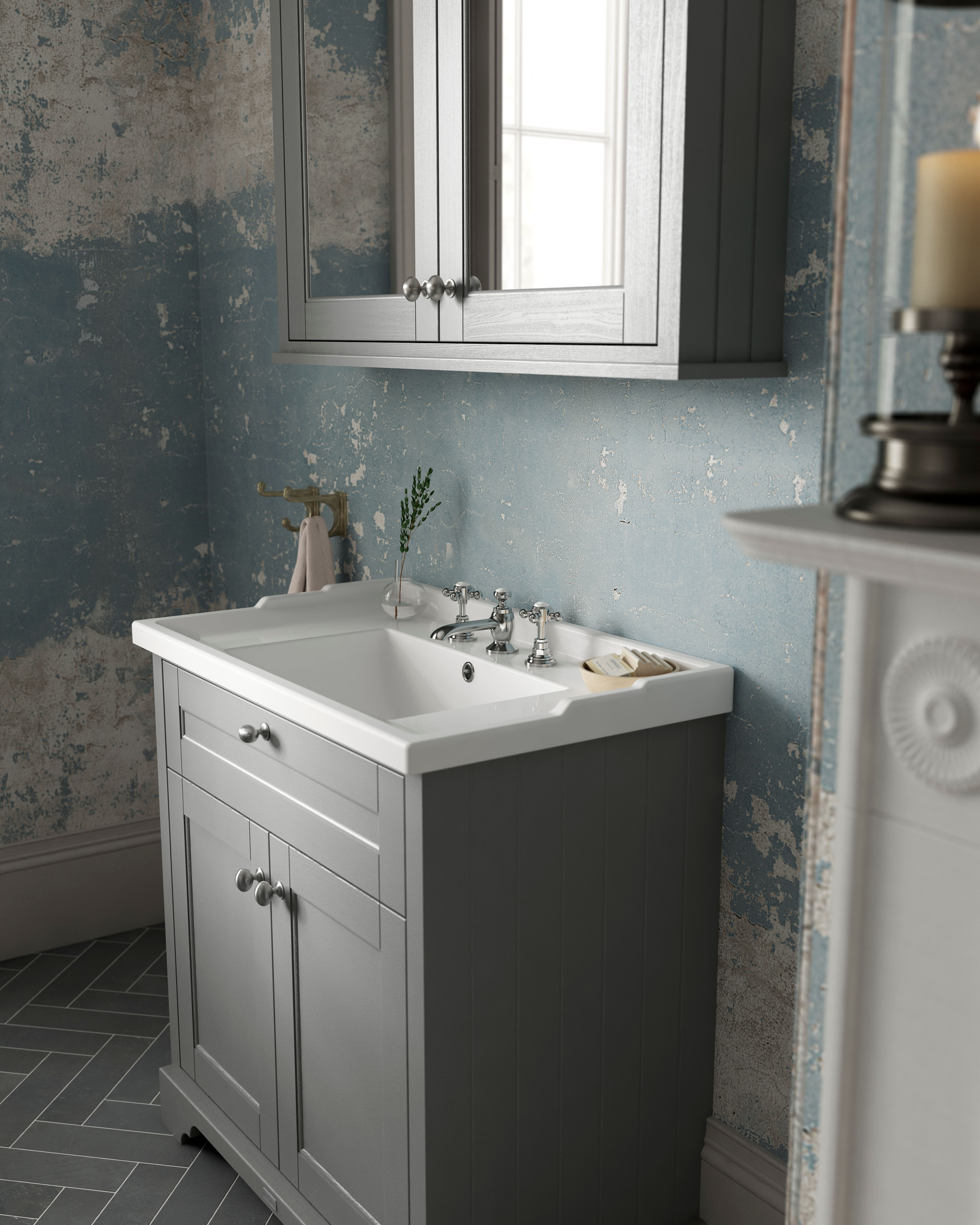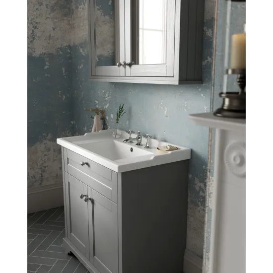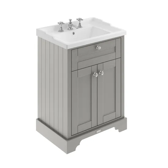 Old London Floor Standing 2 Door Vanity Unit with 3 Tap Hole Ceramic Basin 600mm - Storm Grey