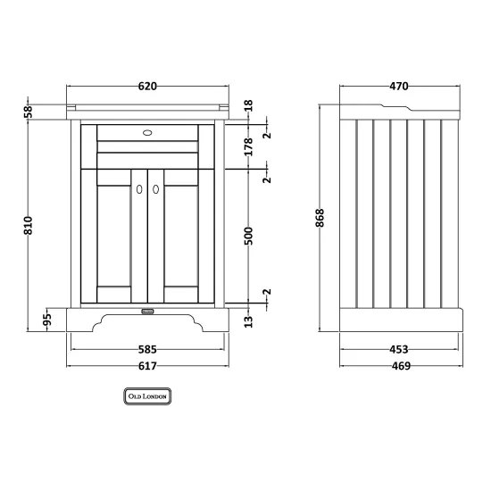 Hudson Reed Old London 600mm Floor Standing Vanity Unit With 3 Tap Hole Ceramic Basin