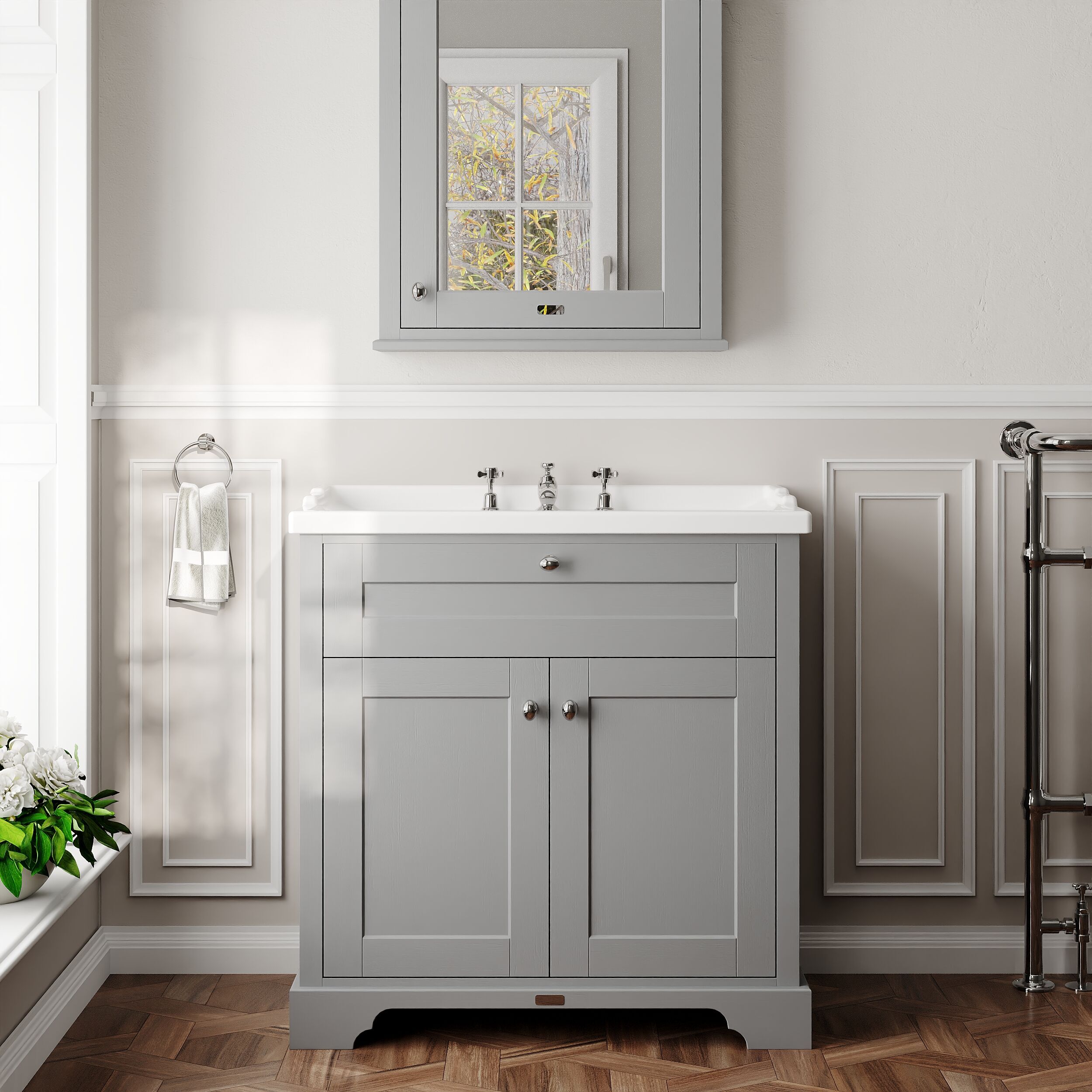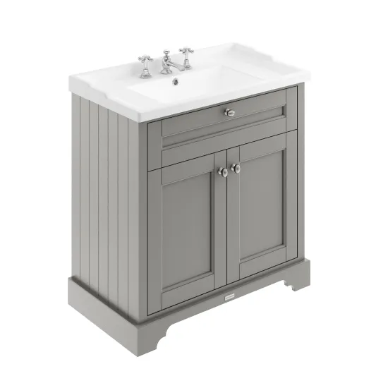 Old London Floor Standing 2 Door Vanity Unit with 3 Tap Hole Ceramic Basin 800mm - Storm Grey