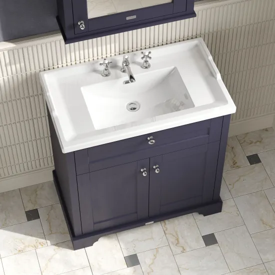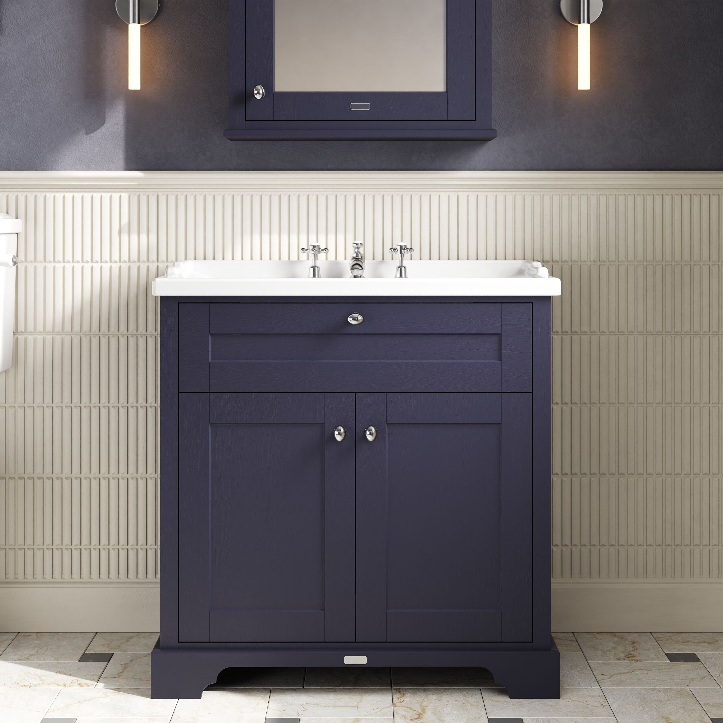 Old London Floor Standing 2 Door Vanity Unit with 3 Tap Hole Ceramic Basin 800mm - Twilight Blue