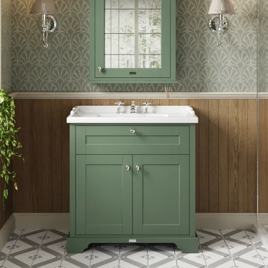 Old London Floor Standing 2 Door Vanity Unit with 3 Tap Hole Ceramic Basin 800mm - Hunter Green