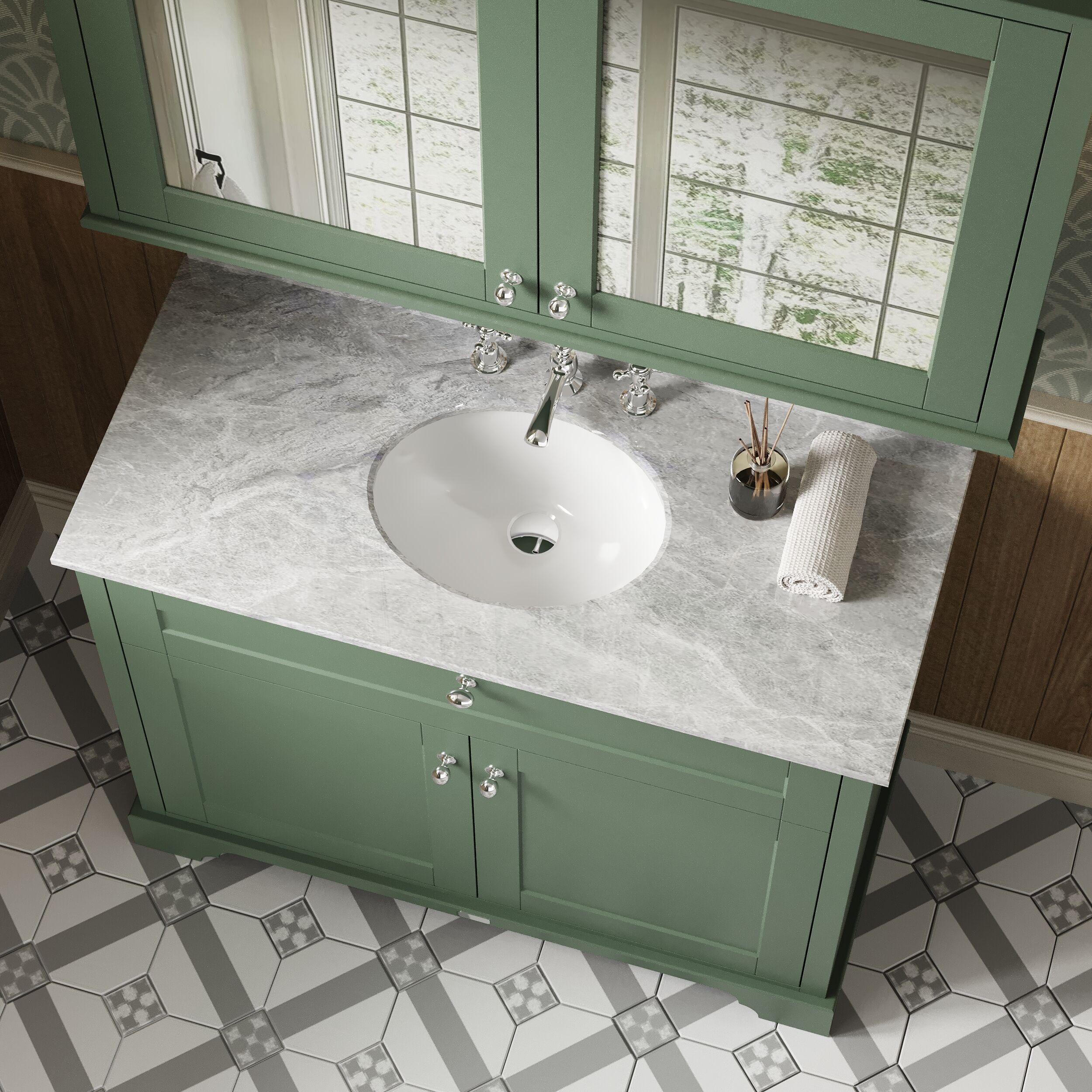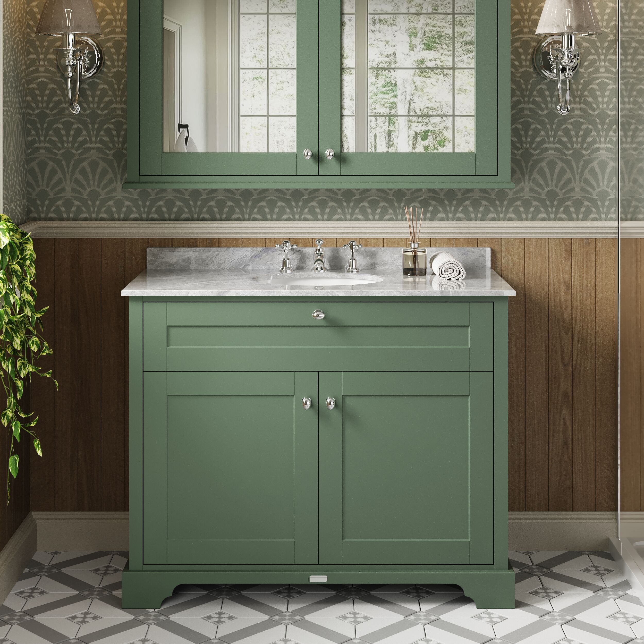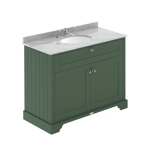 Old London Floor Standing 2 Door Vanity Unit with 3 Tap Hole Grey Marble Top 1000mm - Hunter Green