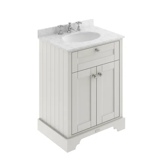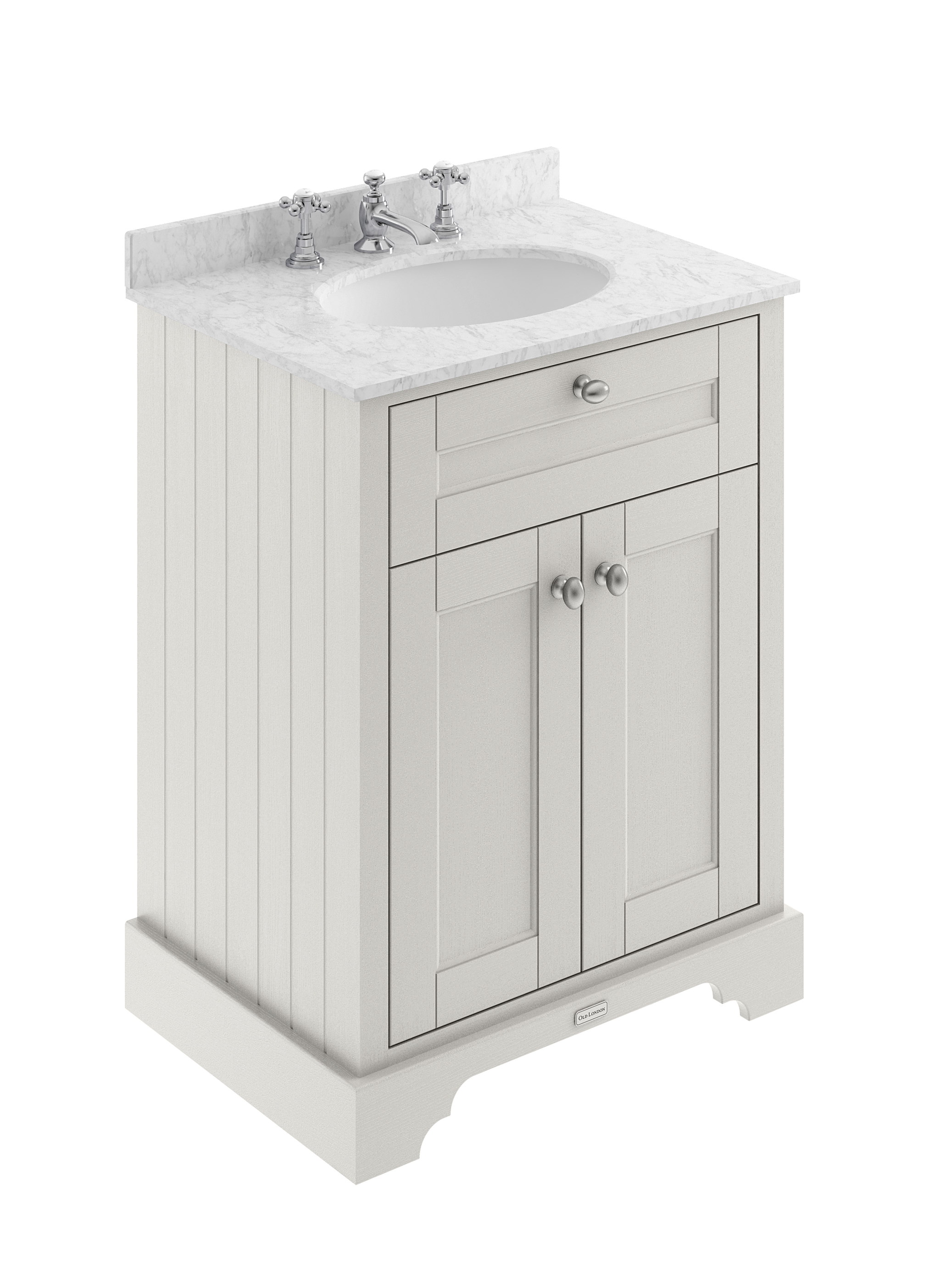 Old London Floor Standing 2 Door Vanity Unit with 3 Tap Hole Grey Marble Top 600mm - Timeless Sand