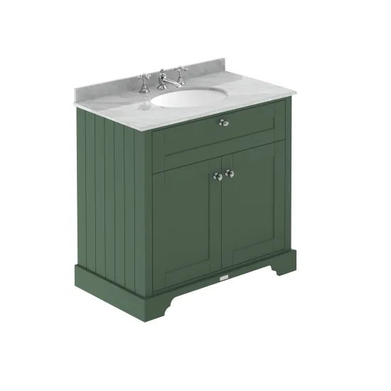 Old London Floor Standing 2 Door Vanity Unit with 3 Tap Hole Grey Marble Top 800mm - Hunter Green