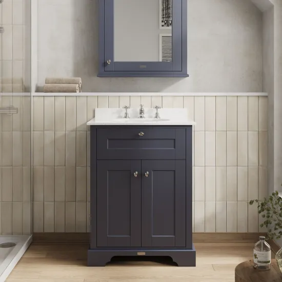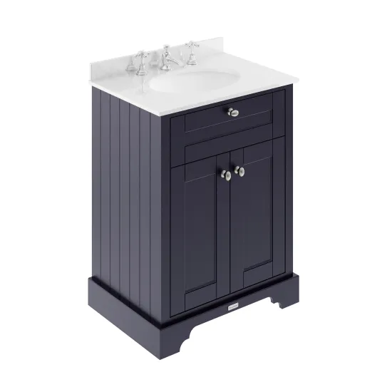 Old London Floor Standing 2 Door Vanity Unit with 3 Tap Hole White Marble Top 600mm - Twilight Blue