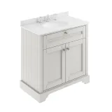 Old London Floor Standing 2 Door Vanity Unit with 3 Tap Hole White Marble Top 800mm - Storm Grey