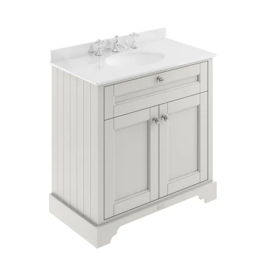Hudson Reed Old London 800mm Floor Standing 2 Door Vanity Unit With 3 Tap Hole White Marble Top Basin