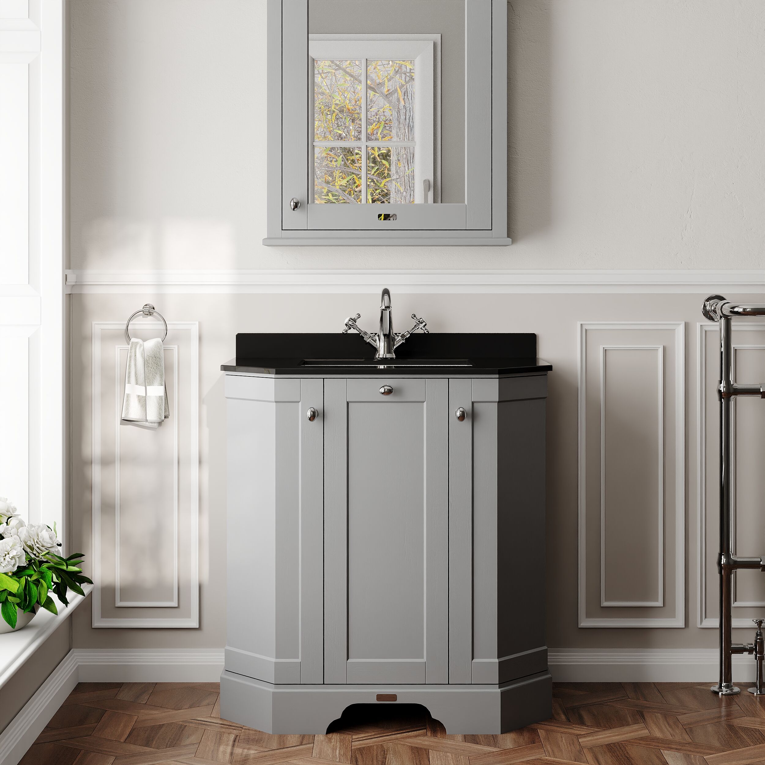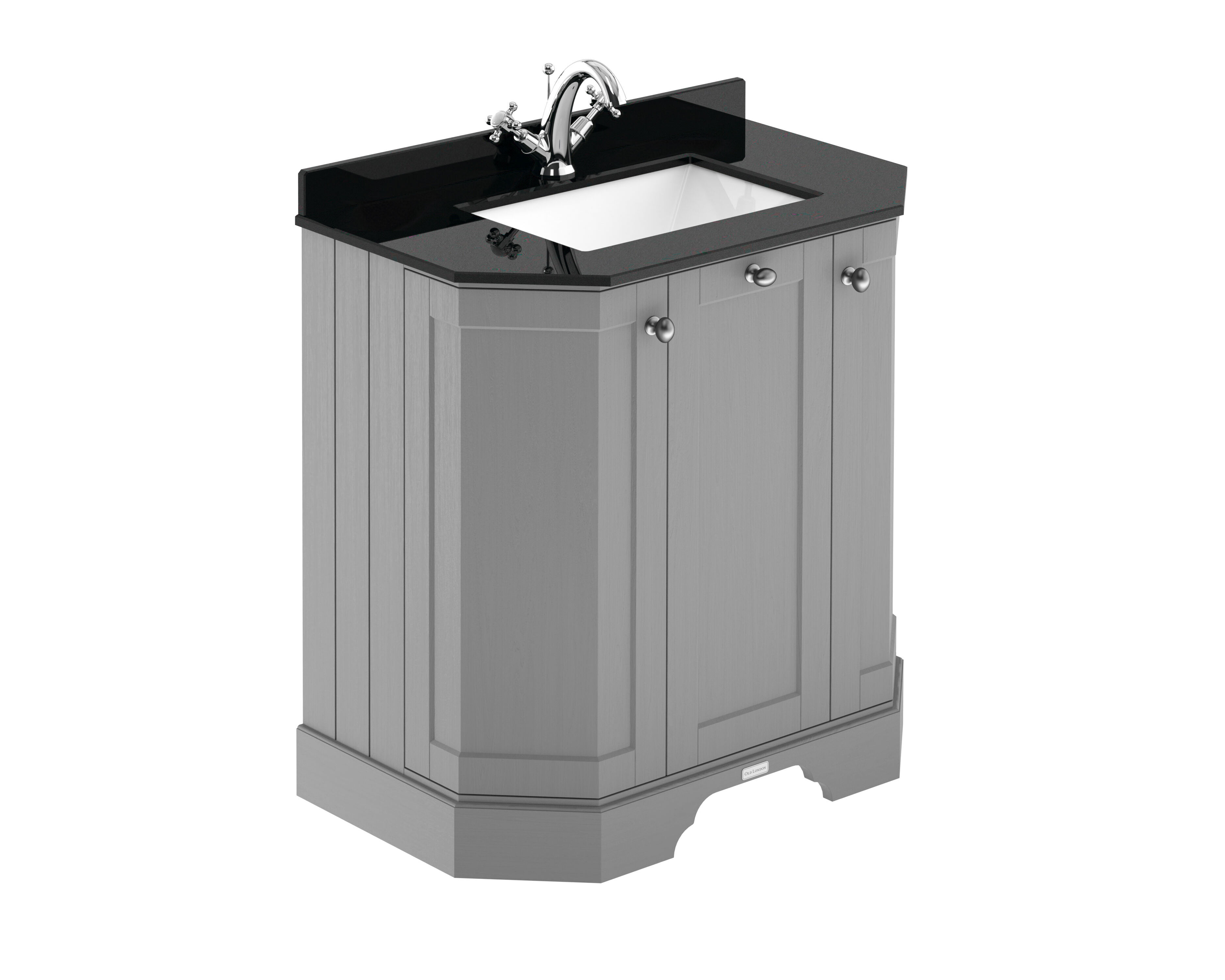 Old London Floor Standing 3 Door Angled Vanity Unit with 1 Tap Hole Black Marble Top 750mm - Storm Grey