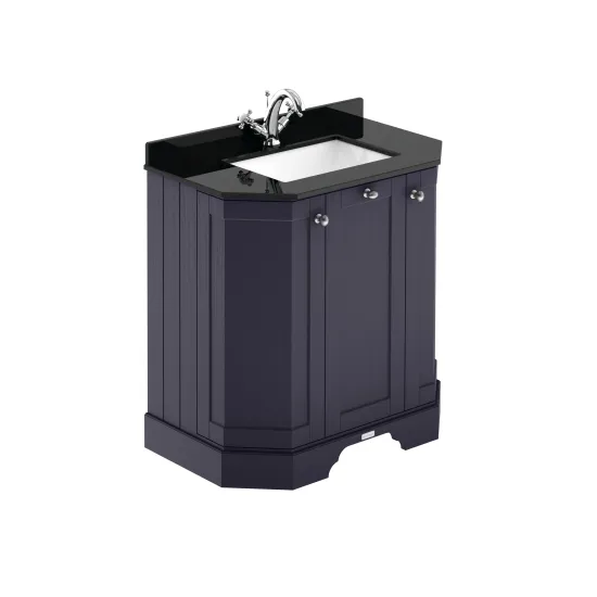 Old London Floor Standing 3 Door Angled Vanity Unit with 1 Tap Hole Black Marble Top 750mm - Twilight Blue