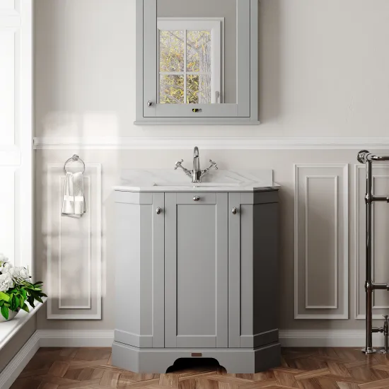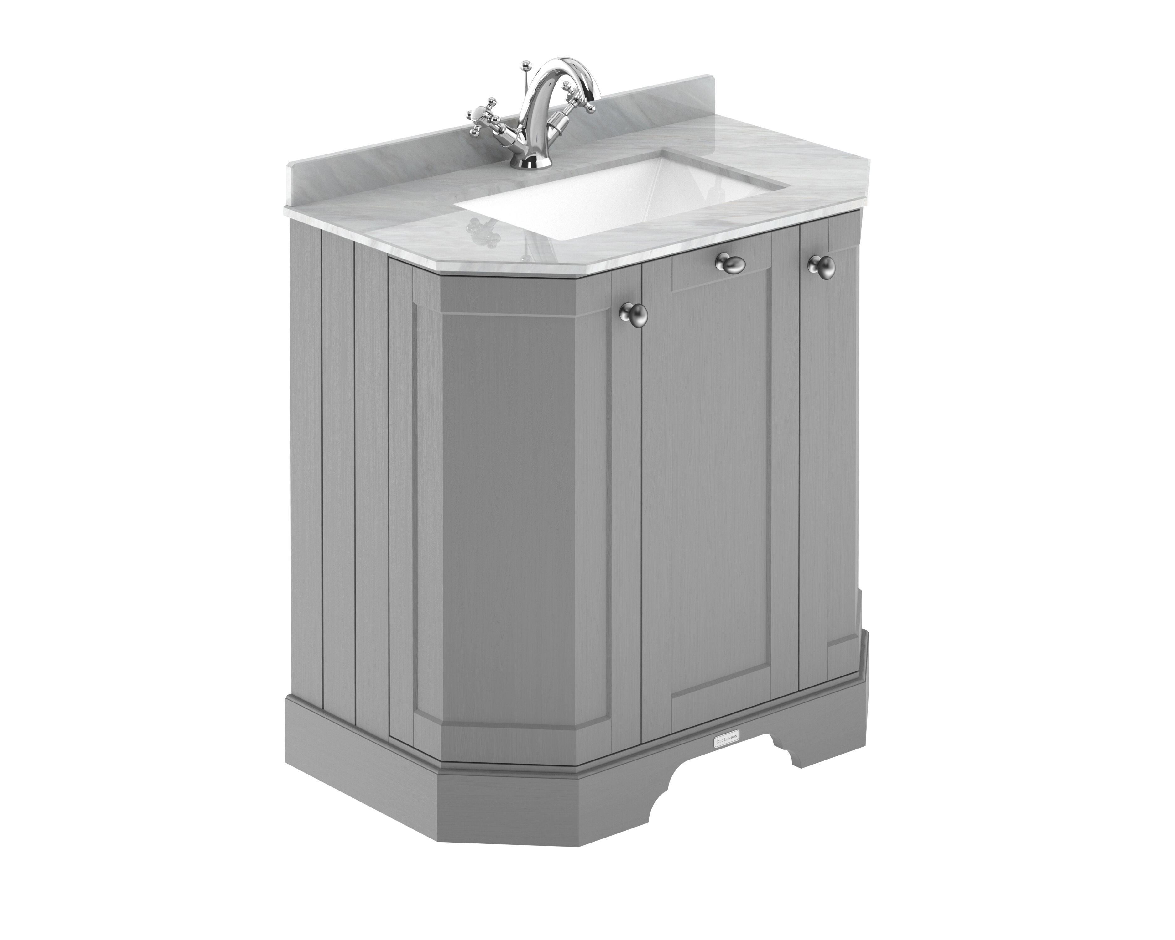 Old London Floor Standing 3 Door Angled Vanity Unit with 1 Tap Hole Grey Marble Top 750mm - Storm Grey