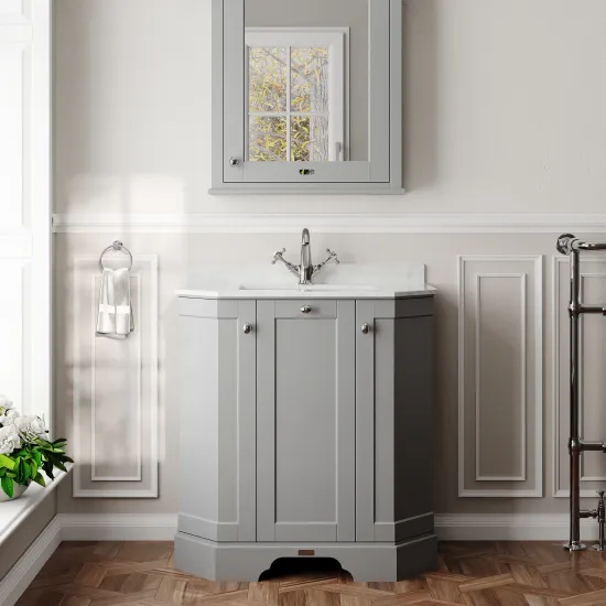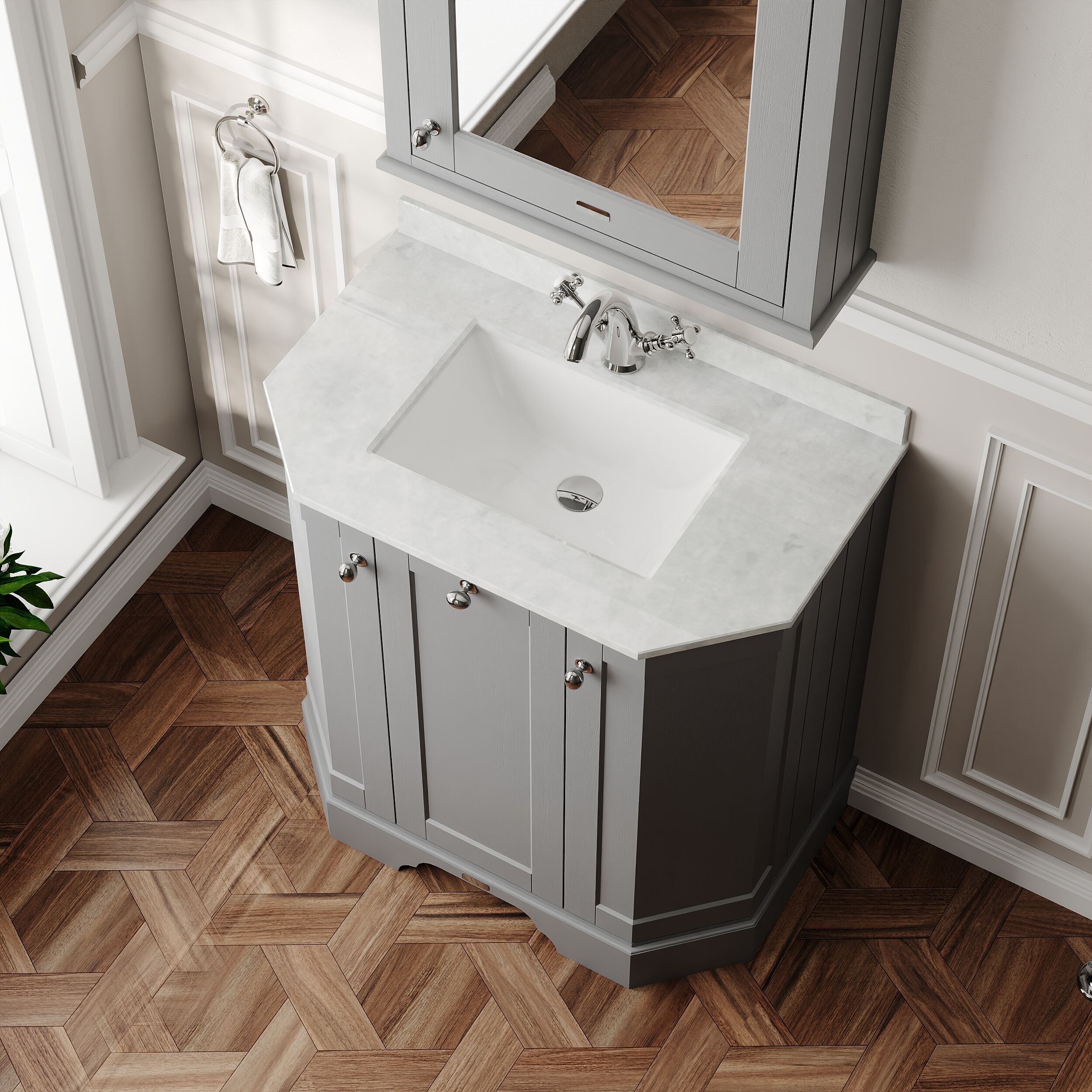 Old London Floor Standing 3 Door Angled Vanity Unit with 1 Tap Hole White Marble Top 750mm - Storm Grey