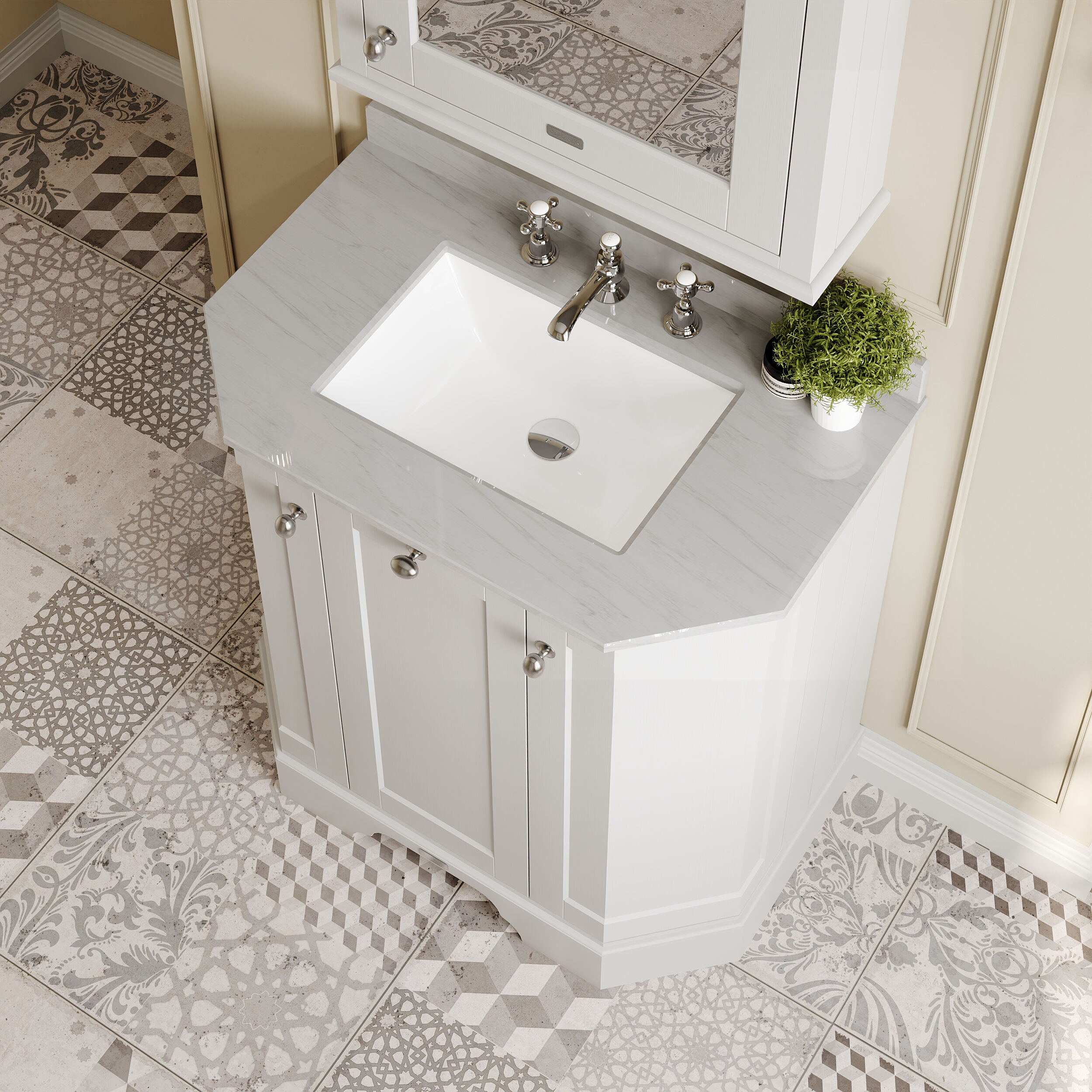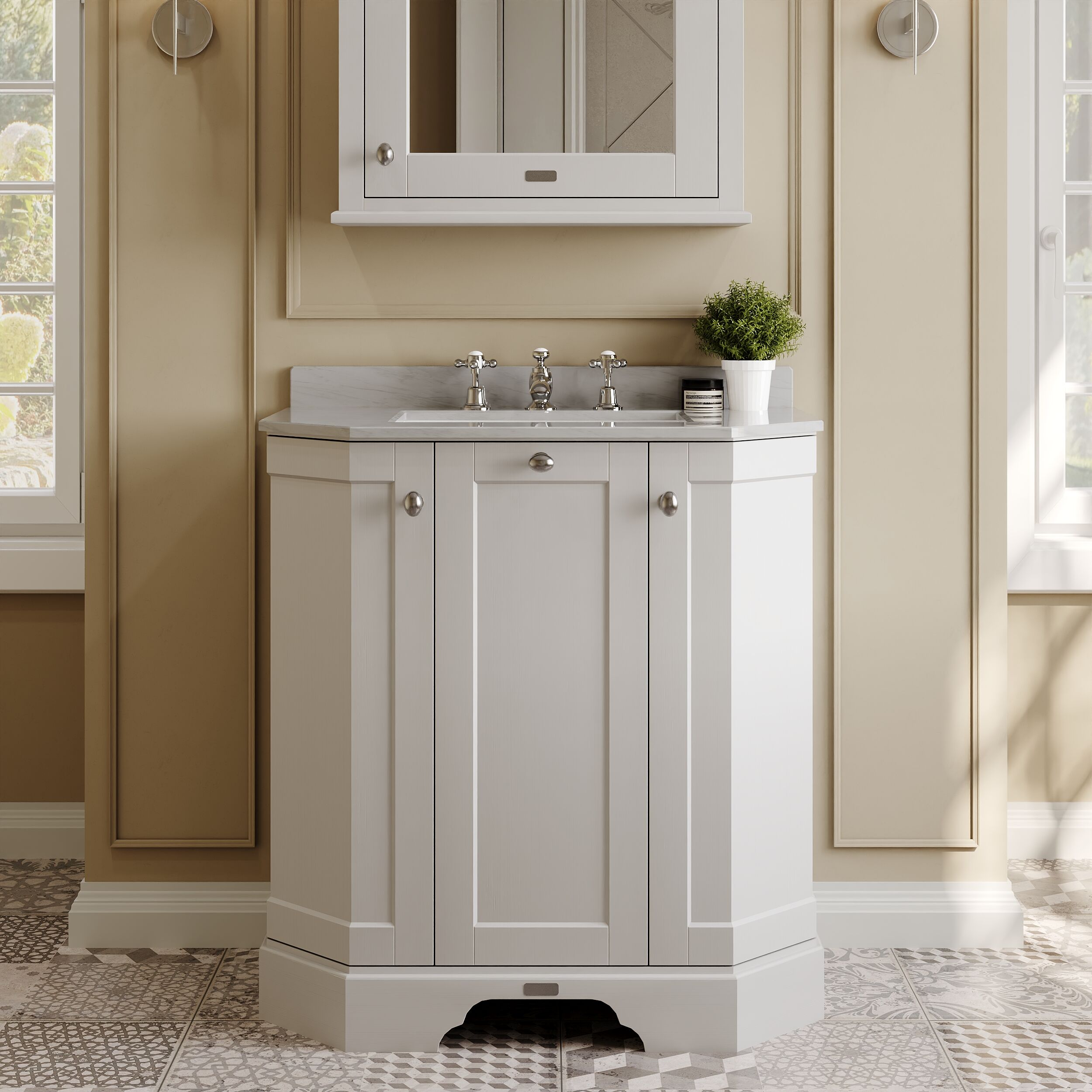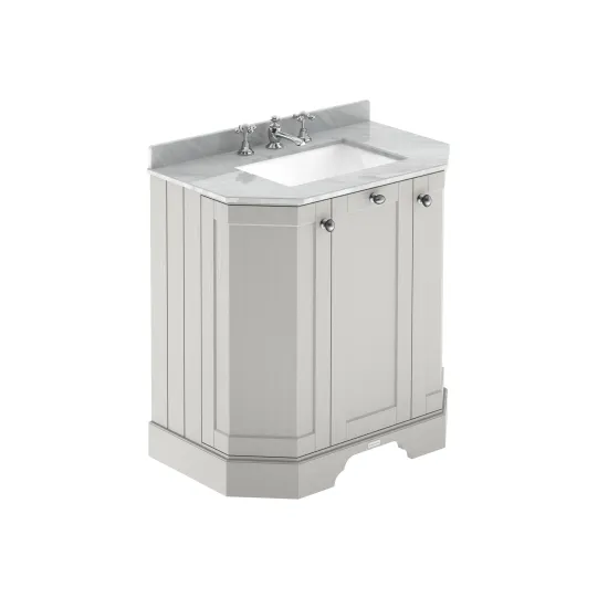 Old London Floor Standing 3 Door Angled Vanity Unit with 3 Tap Hole Grey Marble Top 750mm - Timeless Sand