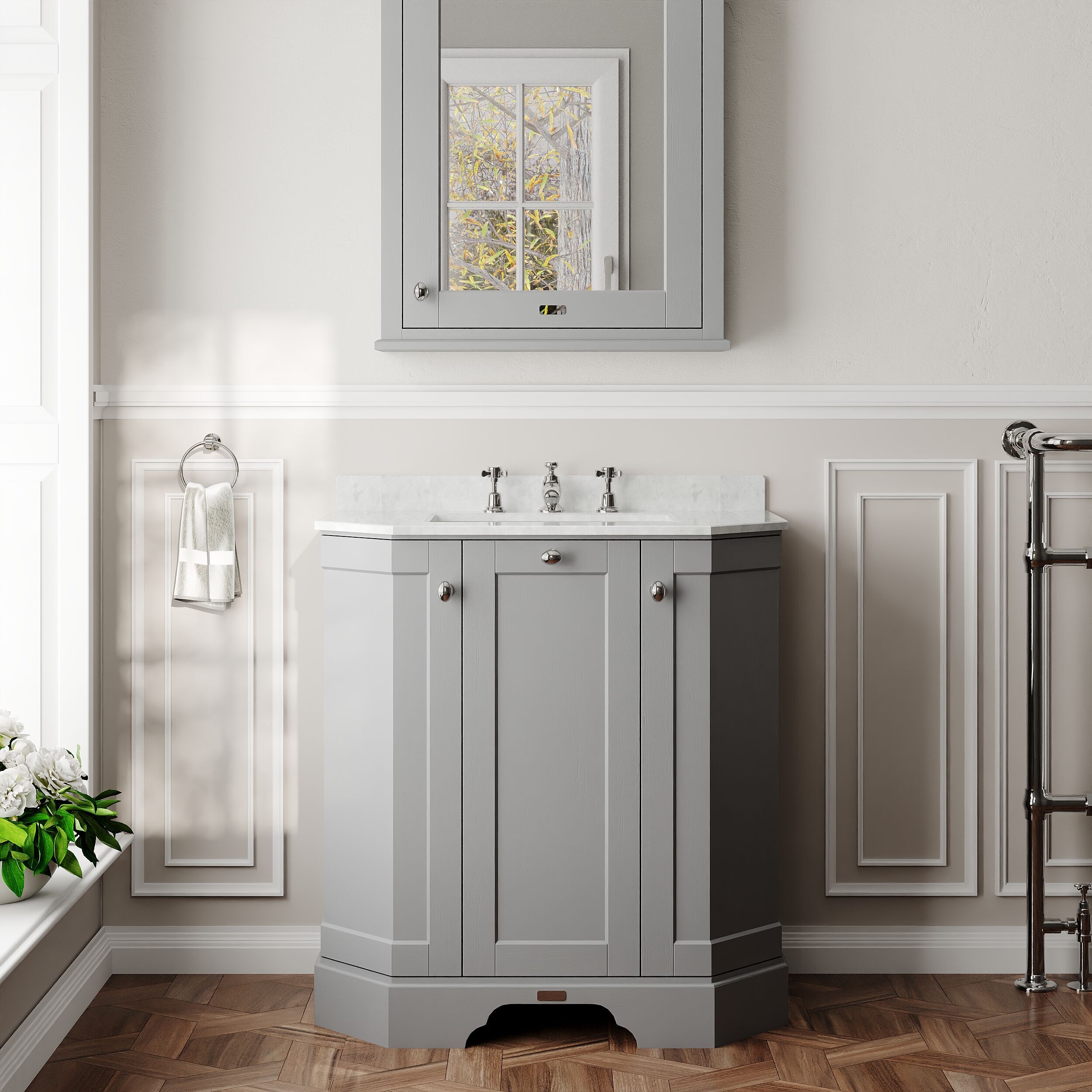 Old London Floor Standing 3 Door Angled Vanity Unit with 3 Tap Hole White Marble Top 750mm - Storm Grey