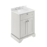 Hudson Reed Old London 600mm Floor Standing 2 Door Vanity Unit with 3 Tap Hole White Marble Top, Soft Close Doors, Rigid