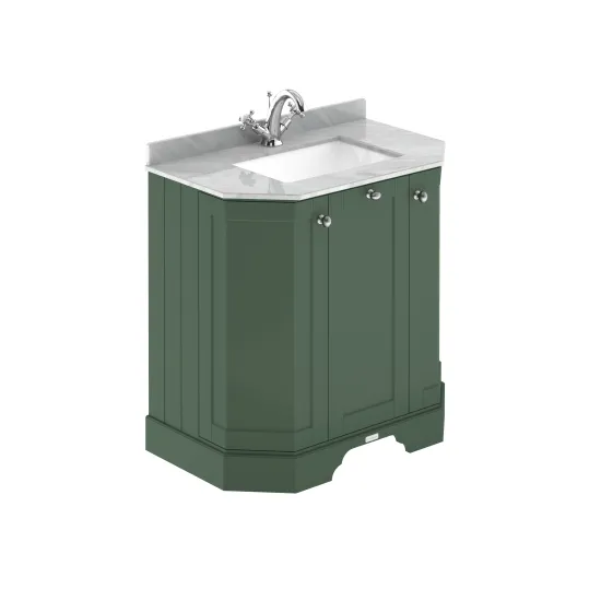 Old London Floor Standing 3 Door Vanity Unit with 1 Tap Hole Grey Marble Top 750mm - Hunter Green