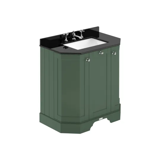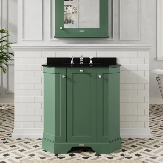 Hudson Reed Old London 786mm Hunter Green Floor Standing 3 Door Vanity Unit With 3 Tap Hole Black Marble Top