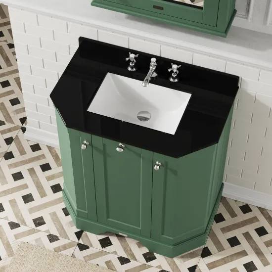 Old London Floor Standing 3 Door Vanity Unit with 3 Tap Hole Black Marble Top 750mm - Hunter Green