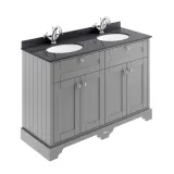 Hudson Reed Old London 1220mm Storm Grey Floor Standing 4 Door Vanity Unit With Black Marble Double Basin