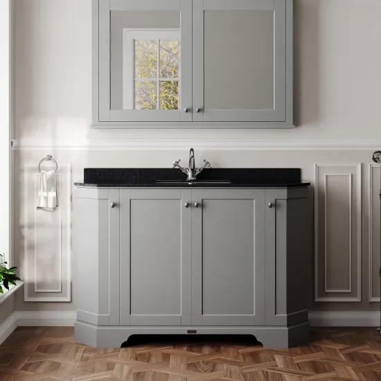 Old London Floor Standing 4 Door Angled Vanity Unit with 1 Tap Hole Black Marble Top 1200mm - Storm Grey