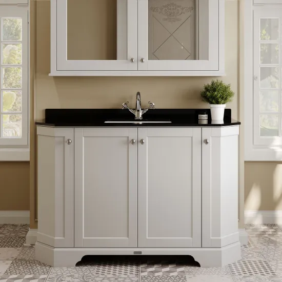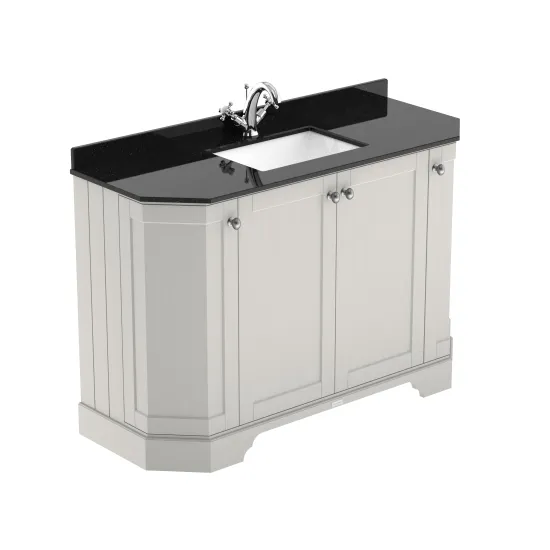 Old London Floor Standing 4 Door Angled Vanity Unit with 1 Tap Hole Black Marble Top 1200mm - Timeless Sand