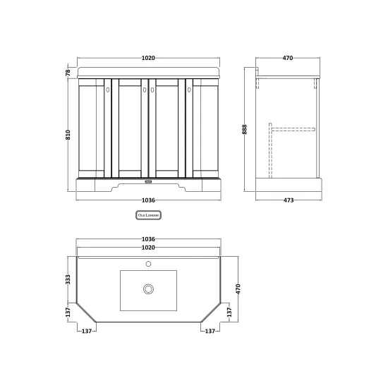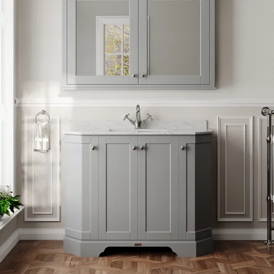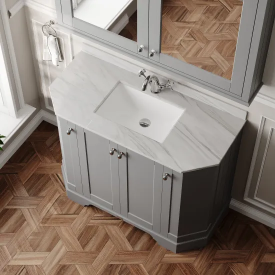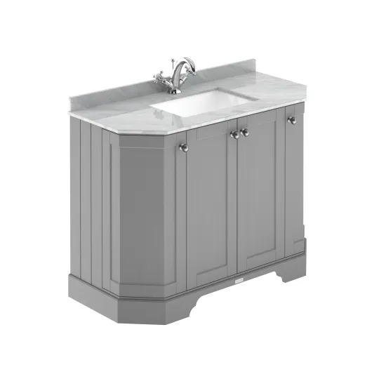 Old London Floor Standing 4 Door Angled Vanity Unit with 1 Tap Hole Grey Marble Top 1000mm - Storm Grey