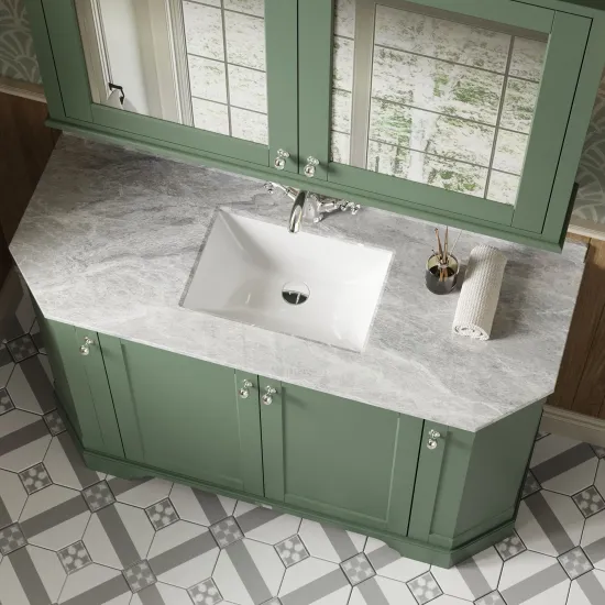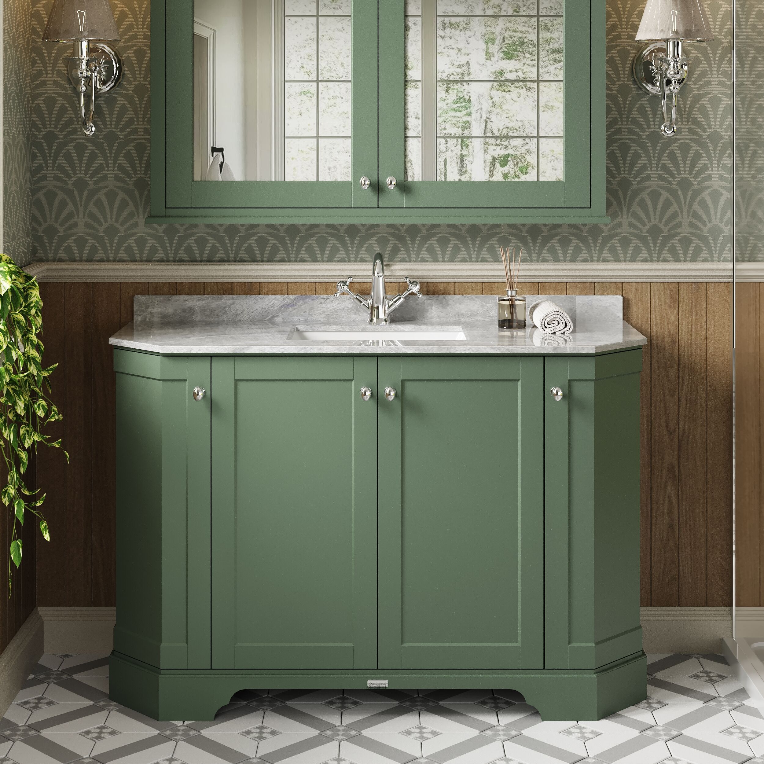 Old London Floor Standing 4 Door Angled Vanity Unit with 1 Tap Hole Grey Marble Top 1200mm - Hunter Green