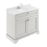 Hudson Reed Old London 1000mm Storm Grey Floor Standing 4 Door Vanity Unit with 1 Tap Hole White Marble Top Basin