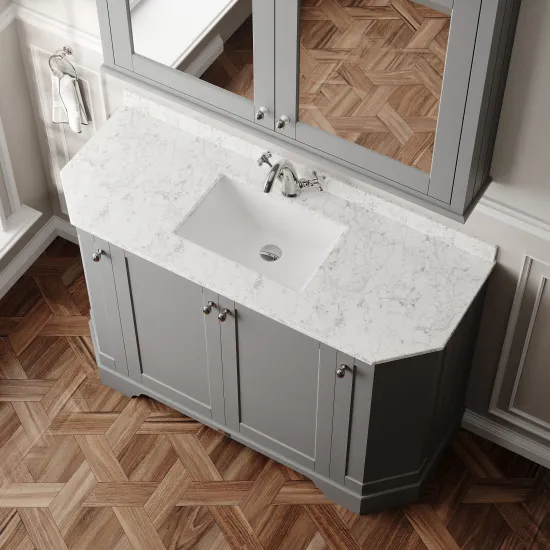 Old London Floor Standing 4 Door Angled Vanity Unit with 1 Tap Hole White Marble Top 1200mm - Storm Grey