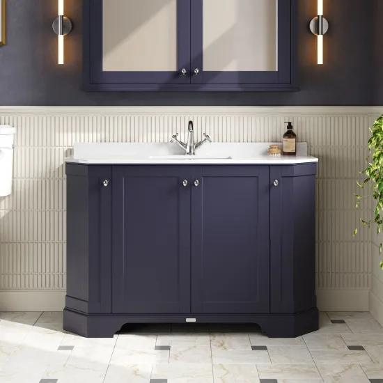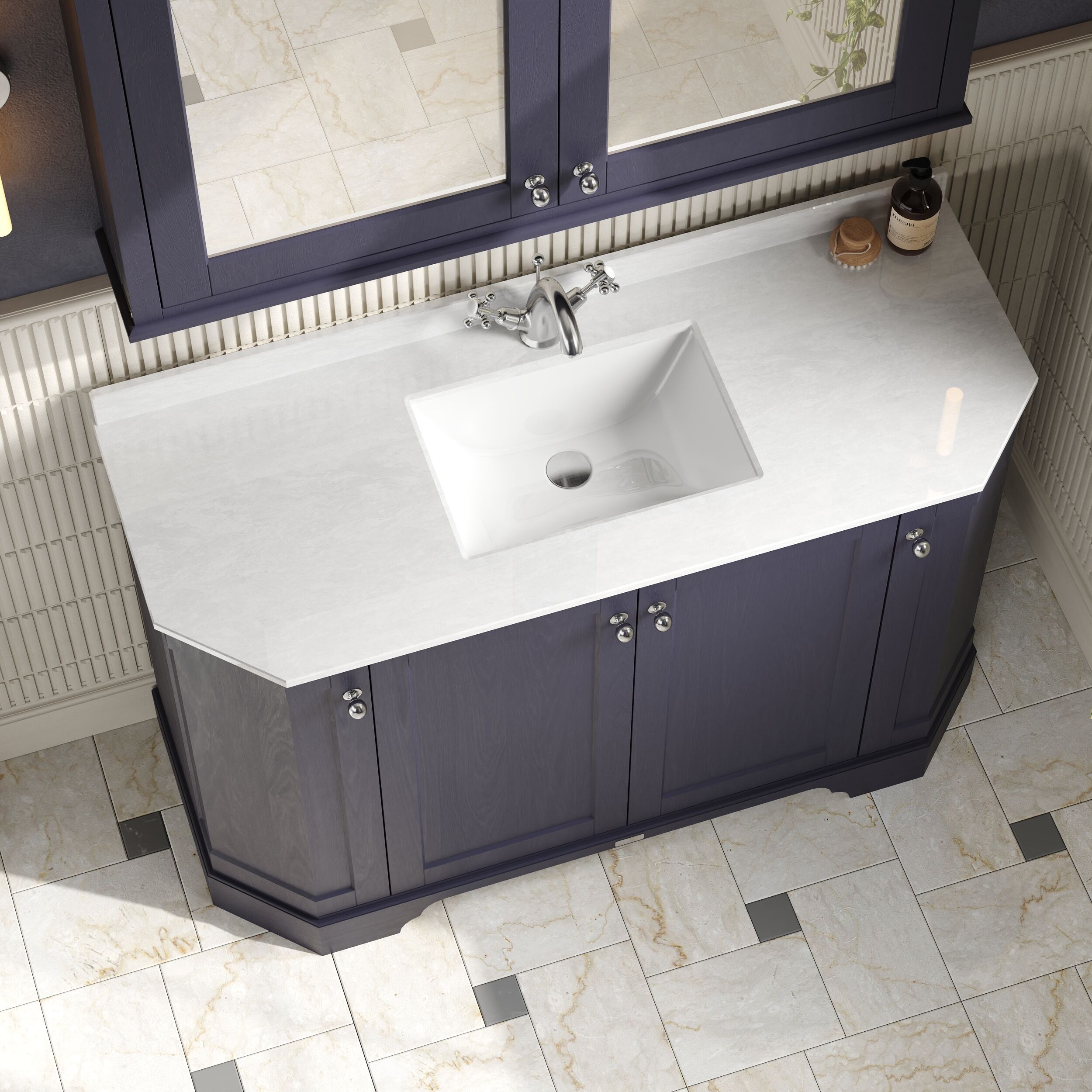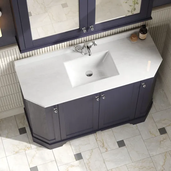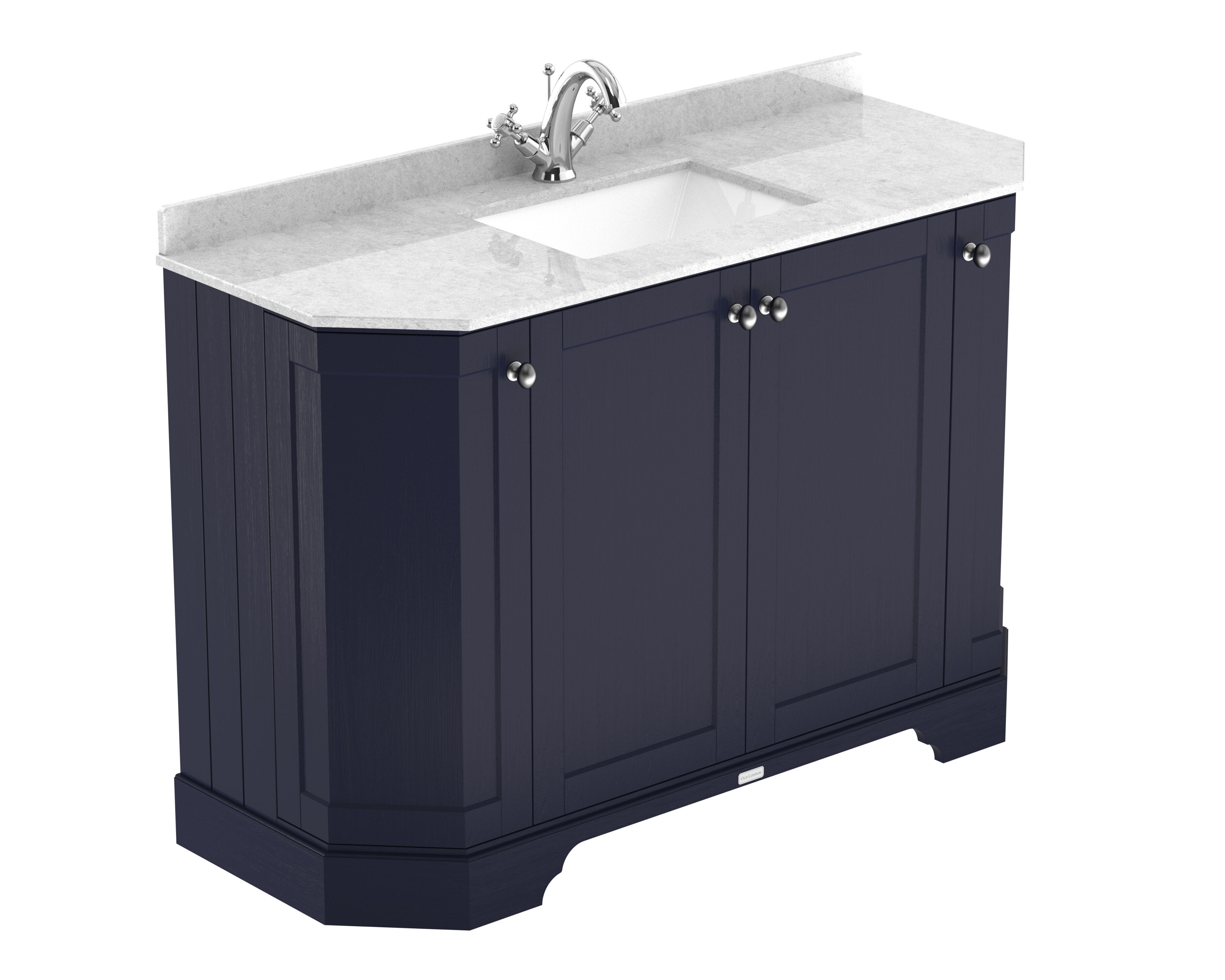Old London Floor Standing 4 Door Angled Vanity Unit with 1 Tap Hole White Marble Top 1200mm - Twilight Blue