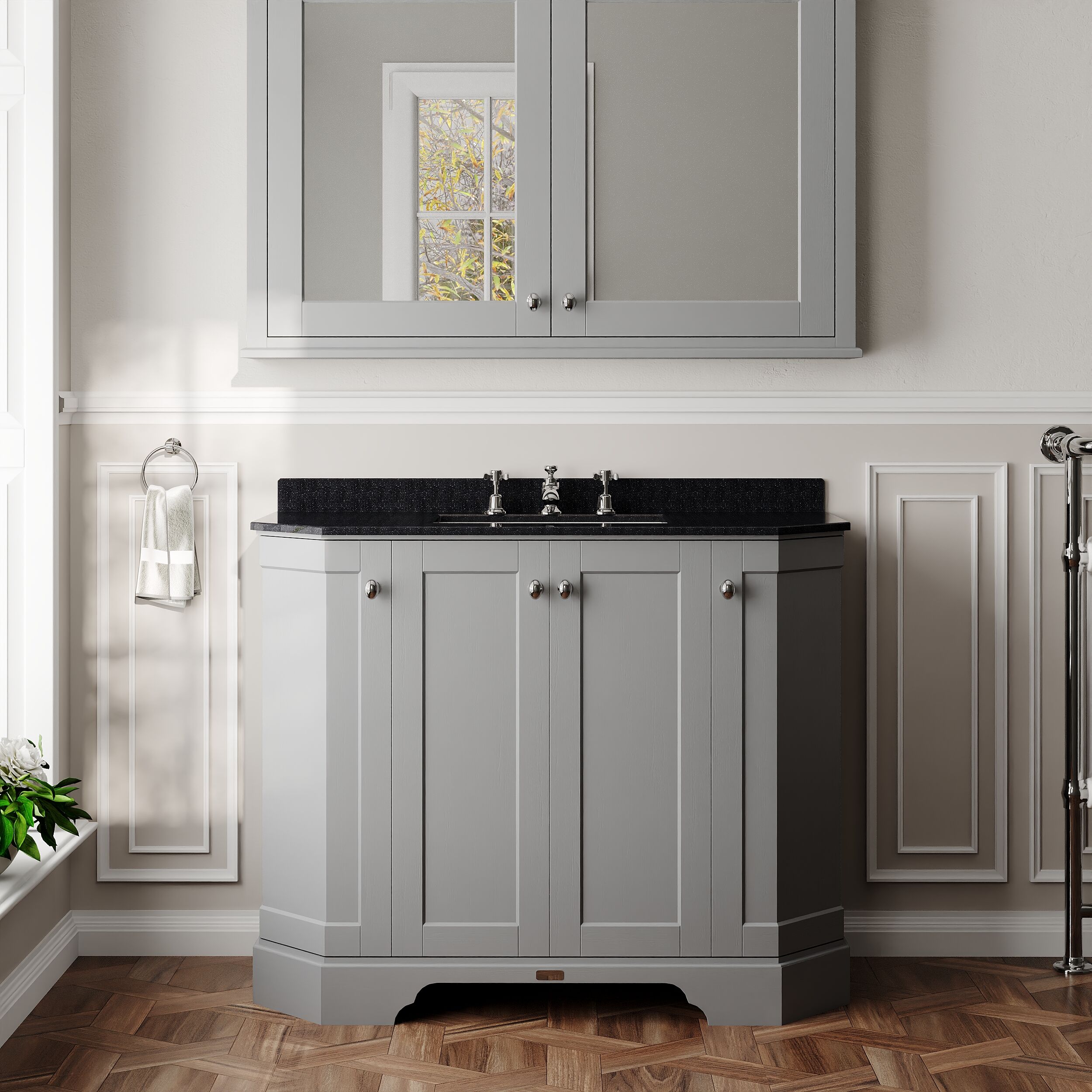 Old London Floor Standing 4 Door Angled Vanity Unit with 3 Tap Hole Black Marble Top 1000mm - Storm Grey