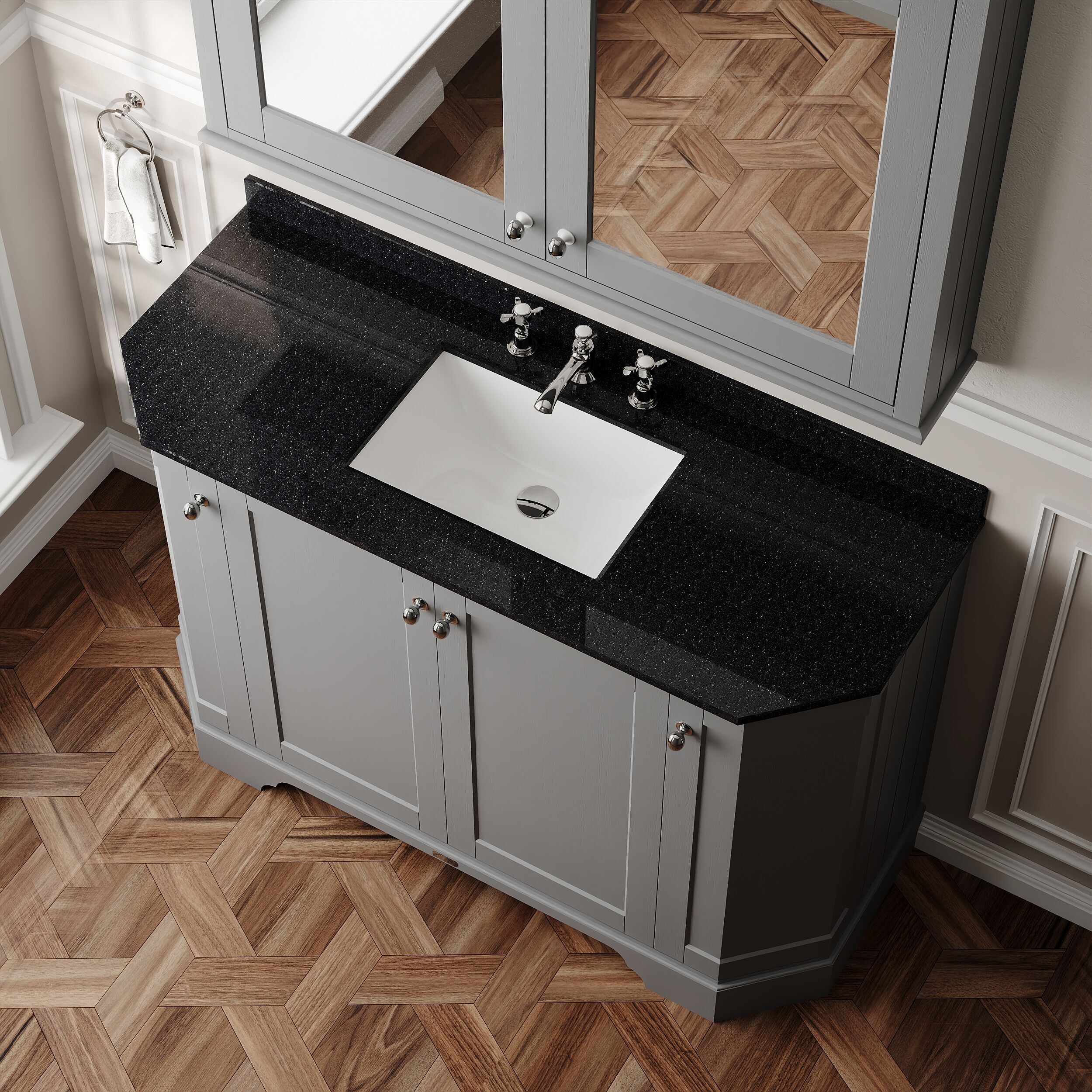 Old London Floor Standing 4 Door Angled Vanity Unit with 3 Tap Hole Black Marble Top 1200mm - Storm Grey
