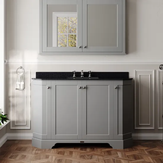 Hudson Reed Old London 1200mm Storm Grey 4 Door Double Basin Vanity Unit With Black Marble Top