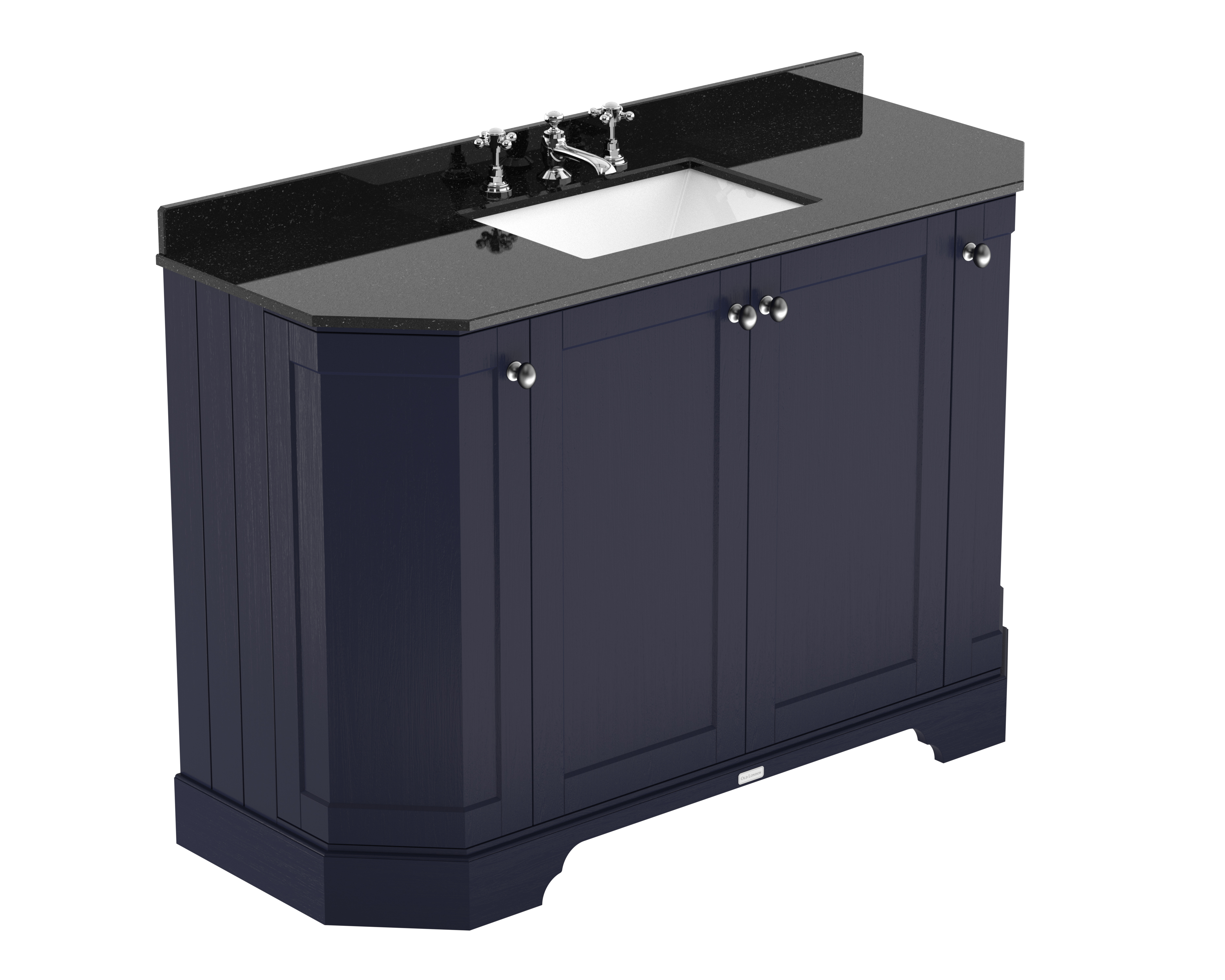 Hudson Reed Old London 1200mm Storm Grey Floor Standing 4 Door Vanity Unit With 3 Tap Hole Black Marble Top Basin