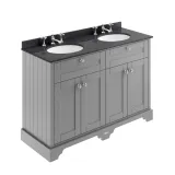 Hudson Reed Old London 1200mm Storm Grey 4 Door Double Basin Vanity Unit With Black Marble Top
