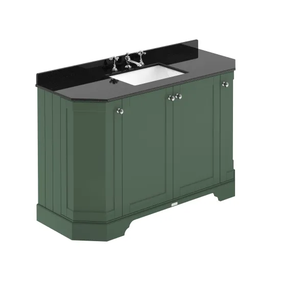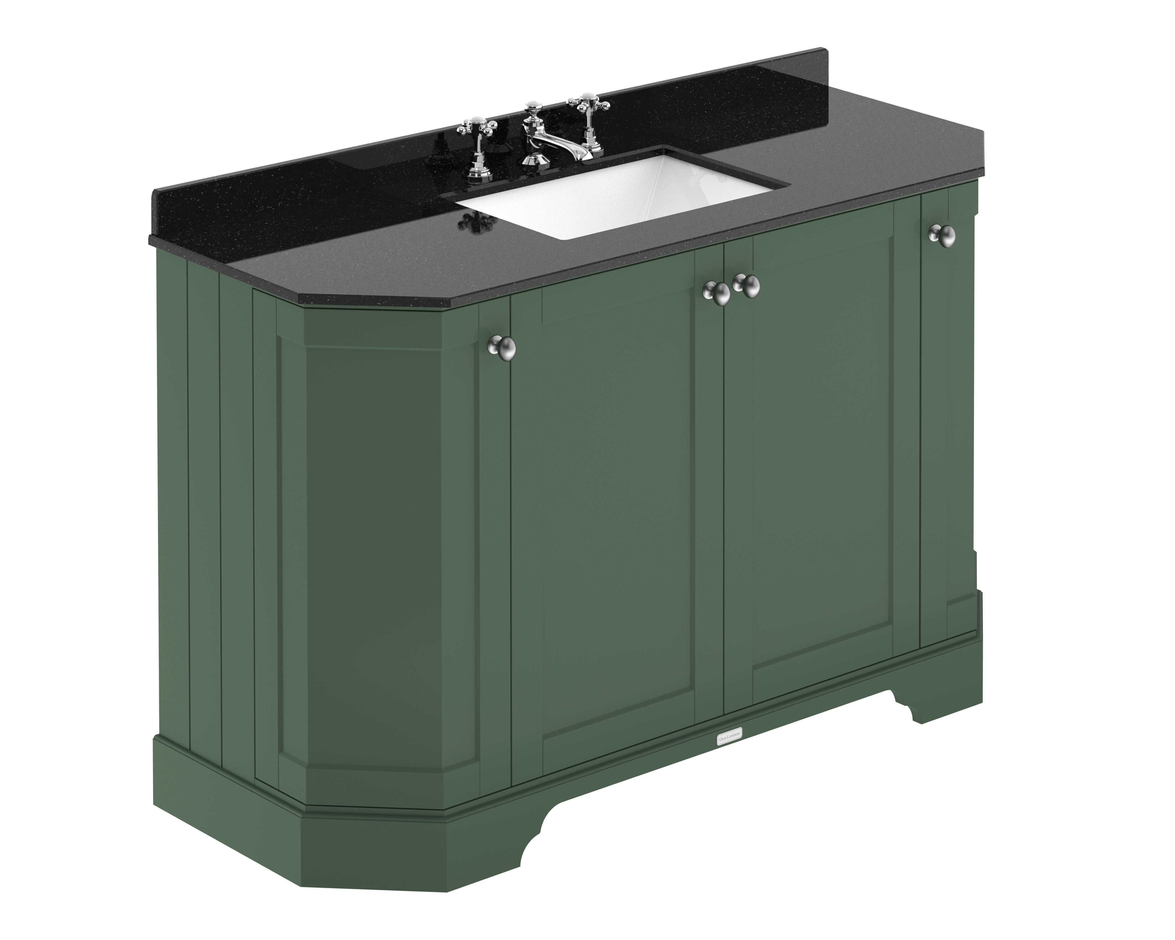 Old London Floor Standing 4 Door Angled Vanity Unit with 3 Tap Hole Black Marble Top 1200mm - Hunter Green