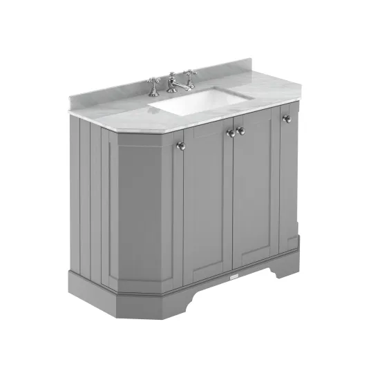 Old London Floor Standing 4 Door Angled Vanity Unit with 3 Tap Hole Grey Marble Top 1000mm - Storm Grey