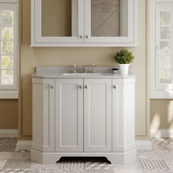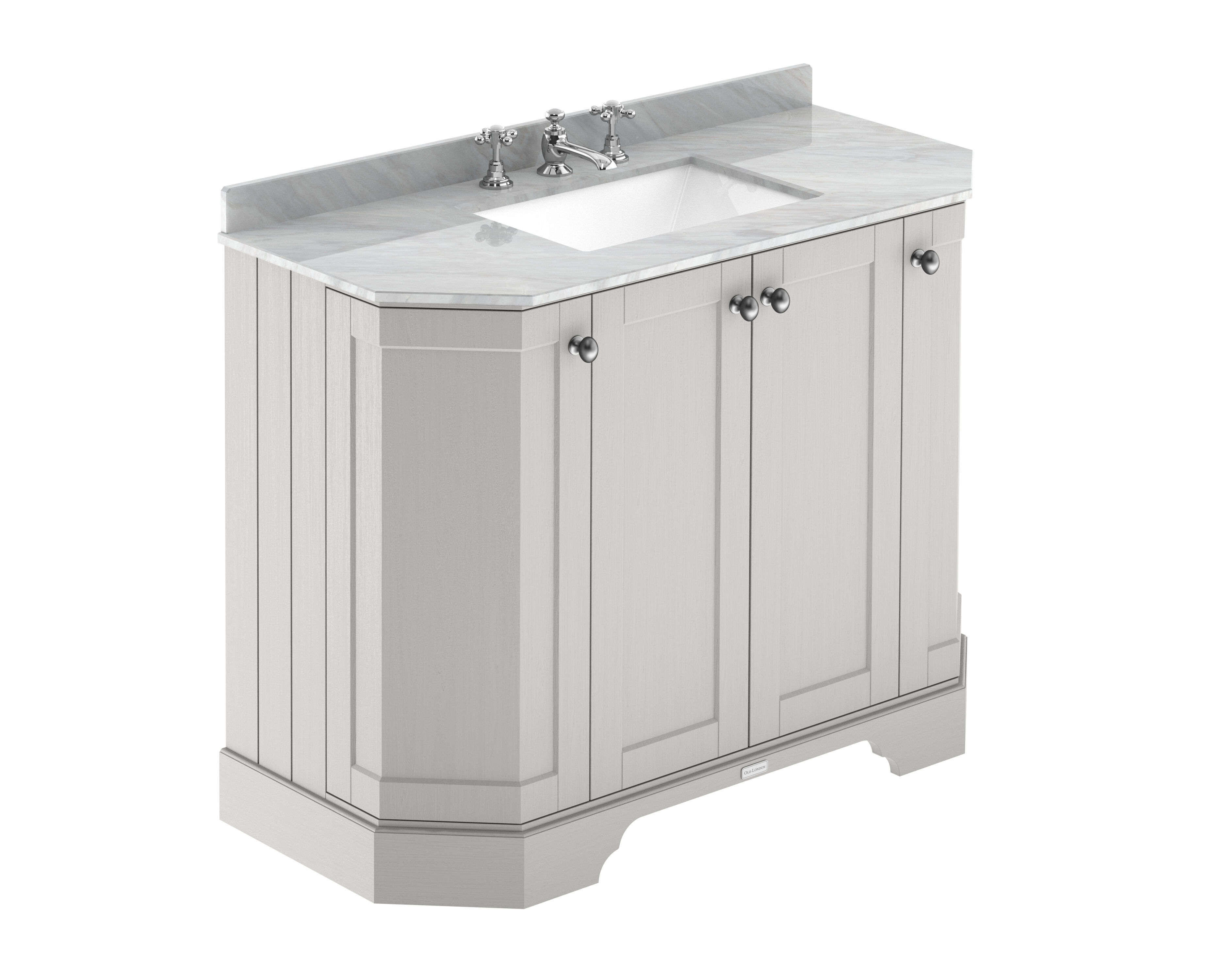 Old London Floor Standing 4 Door Angled Vanity Unit with 3 Tap Hole Grey Marble Top 1000mm - Timeless Sand