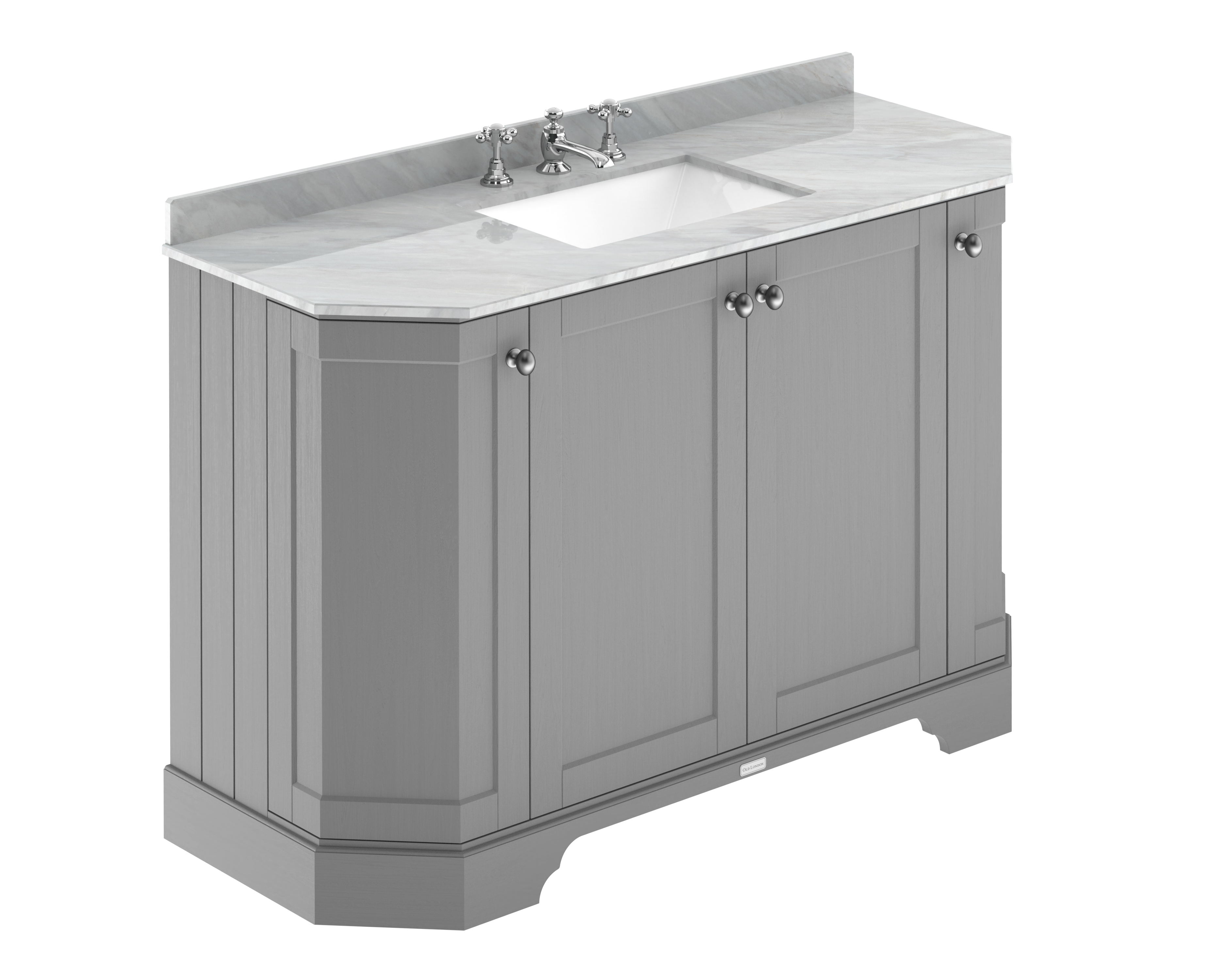 Hudson Reed Old London 1200mm Floor Standing 4 Door Vanity Unit with 3 Tap Hole Grey Marble Top Basin