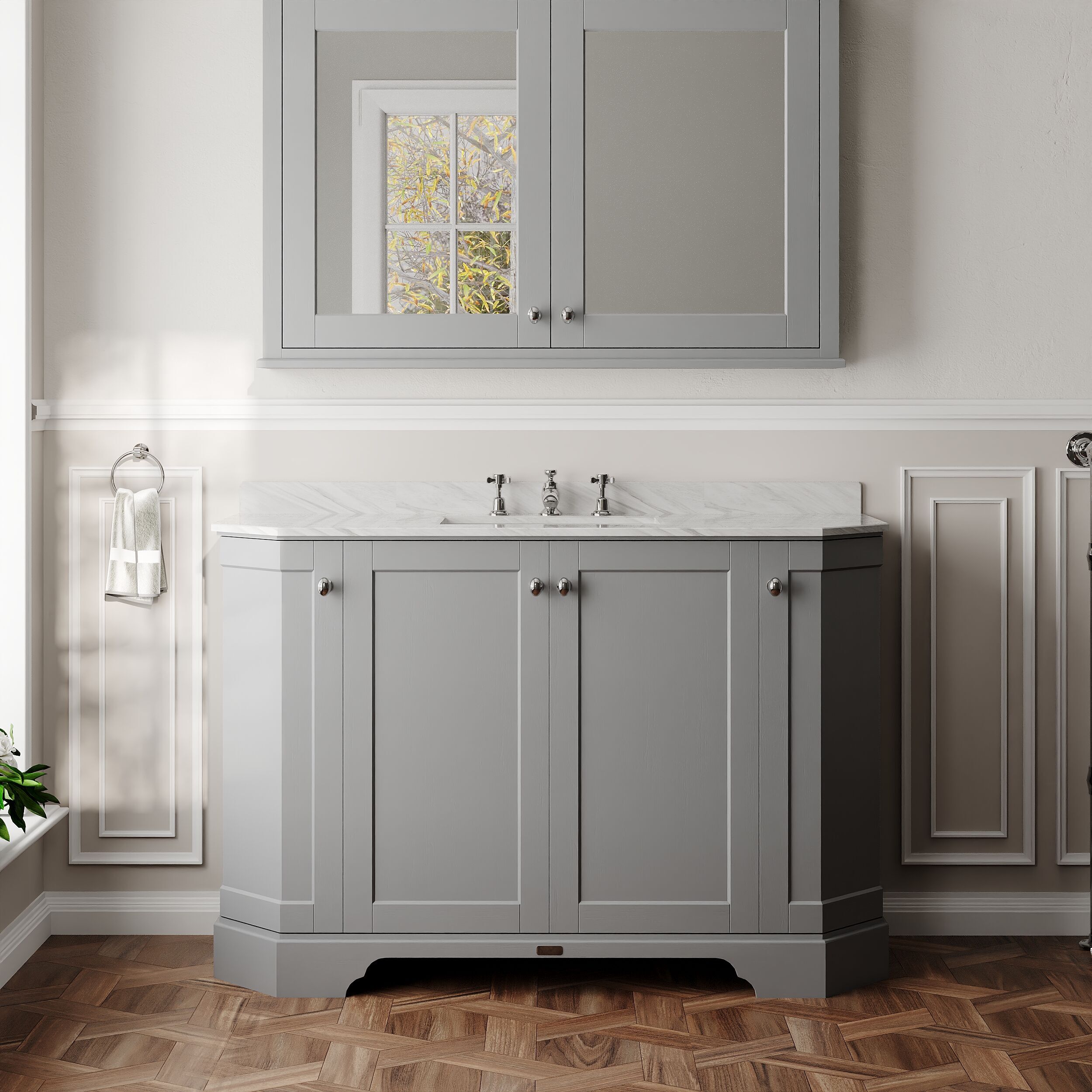 Old London Floor Standing 4 Door Angled Vanity Unit with 3 Tap Hole Grey Marble Top 1200mm - Storm Grey