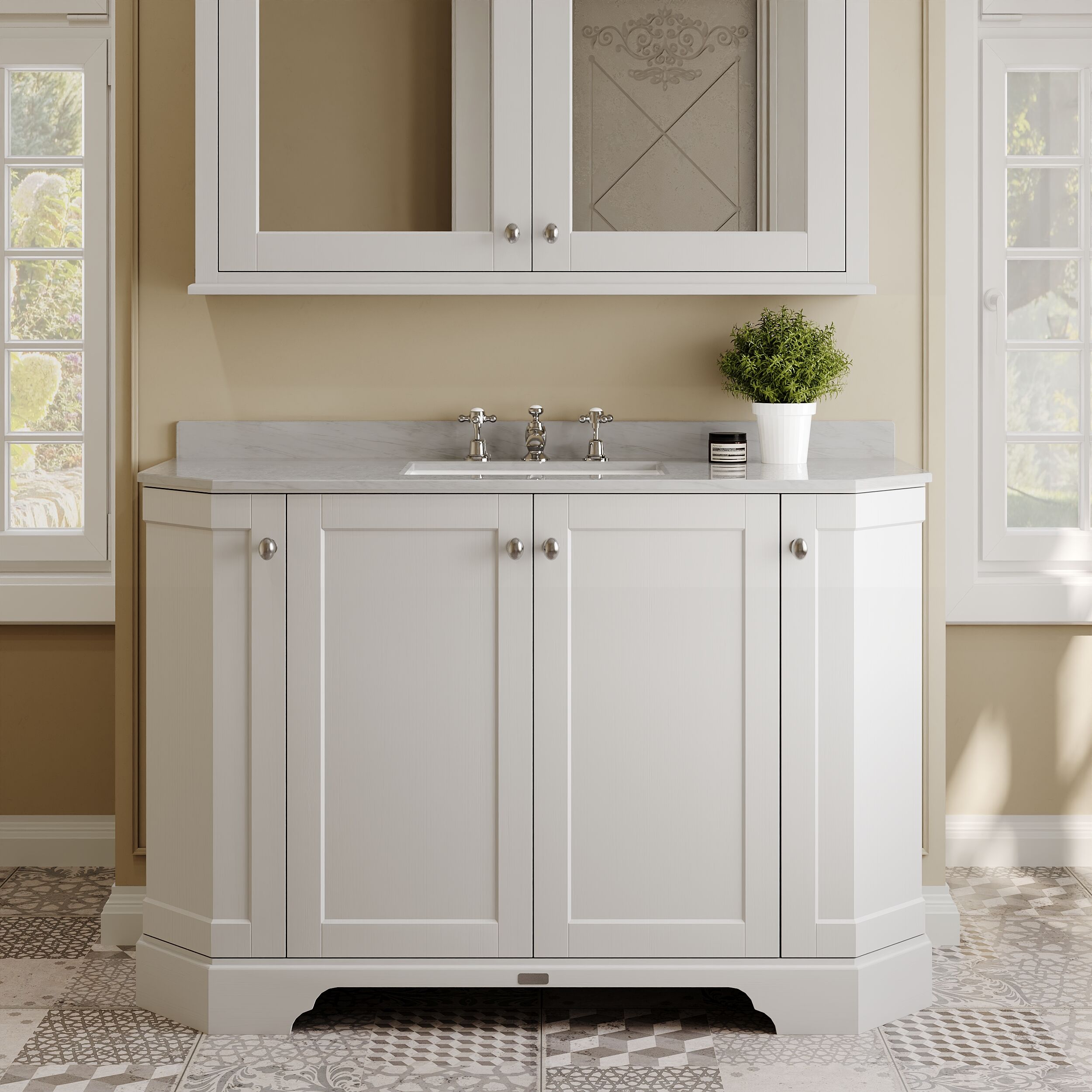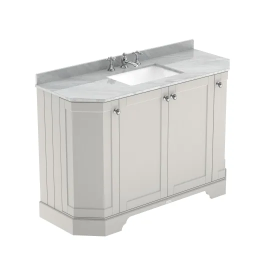 Old London Floor Standing 4 Door Angled Vanity Unit with 3 Tap Hole Grey Marble Top 1200mm - Timeless Sand
