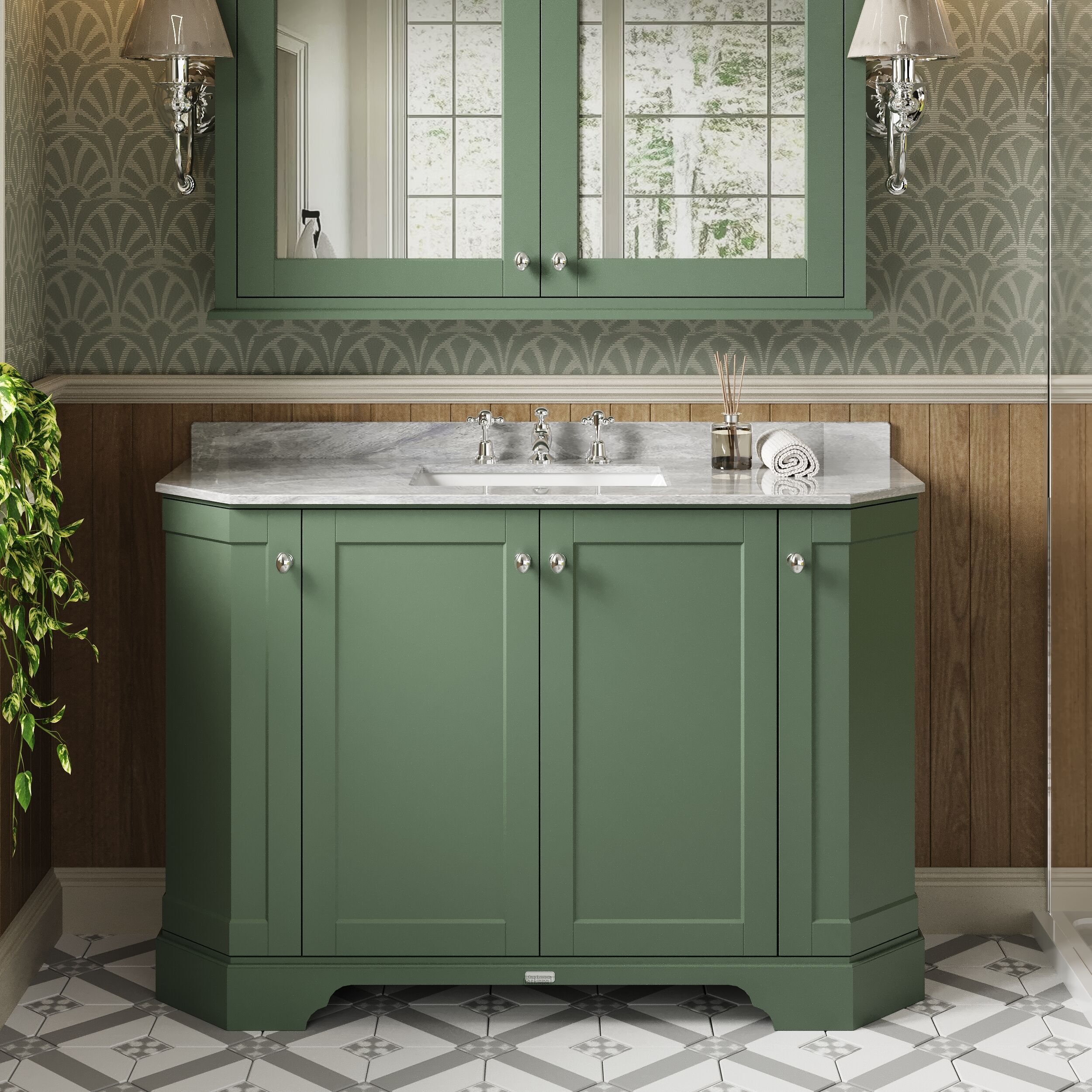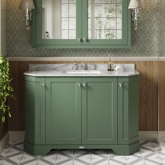 Old London Floor Standing 4 Door Angled Vanity Unit with 3 Tap Hole Grey Marble Top 1200mm - Hunter Green