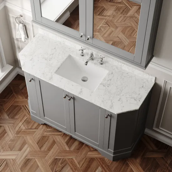 Old London Floor Standing 4 Door Angled Vanity Unit with 3 Tap Hole White Marble Top 1200mm - Storm Grey