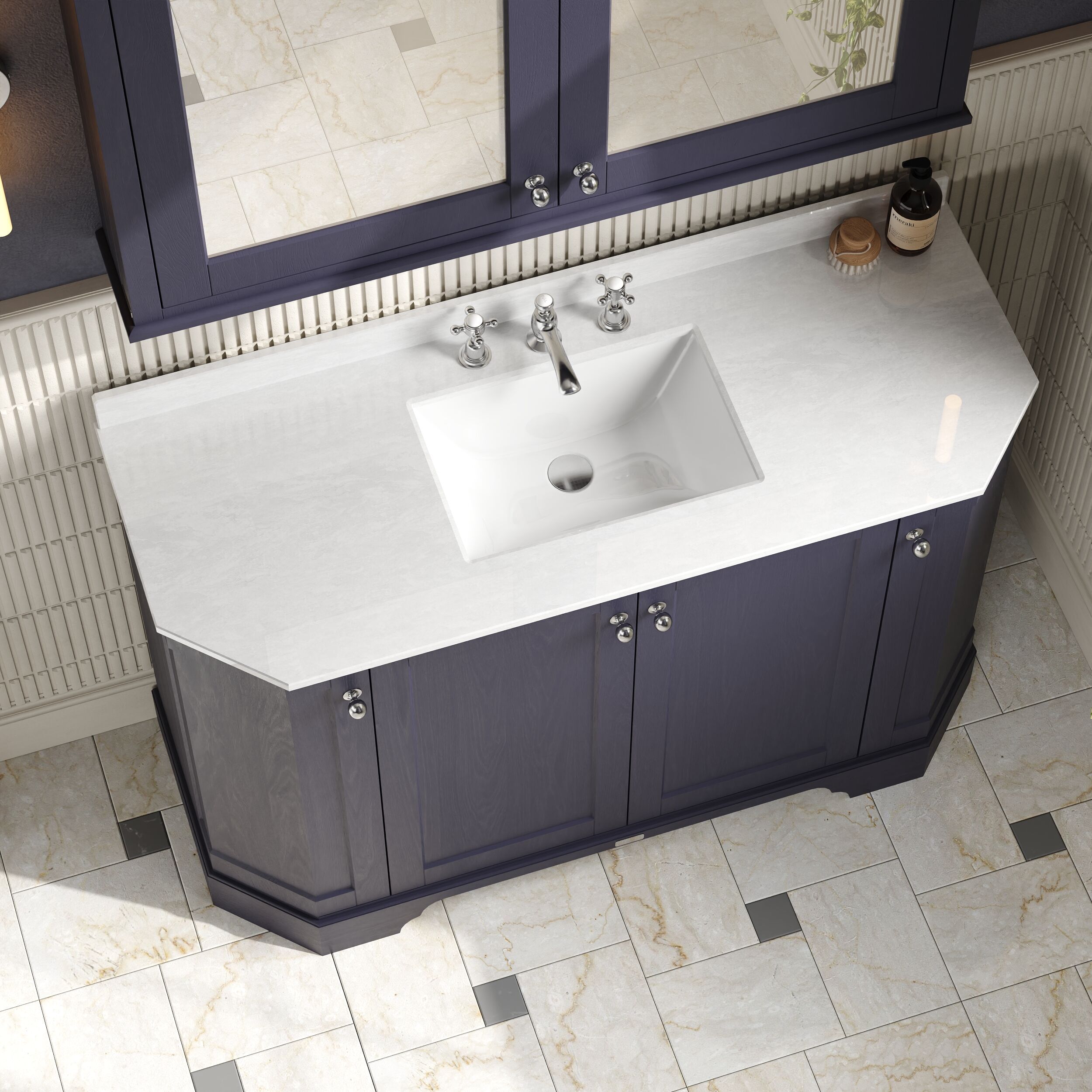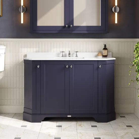 Old London Floor Standing 4 Door Angled Vanity Unit with 3 Tap Hole White Marble Top 1200mm - Twilight Blue