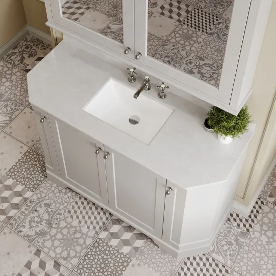Old London Floor Standing 4 Door Angled Vanity Unit with 3 Tap Hole White Marble Top 1200mm - Timeless Sand