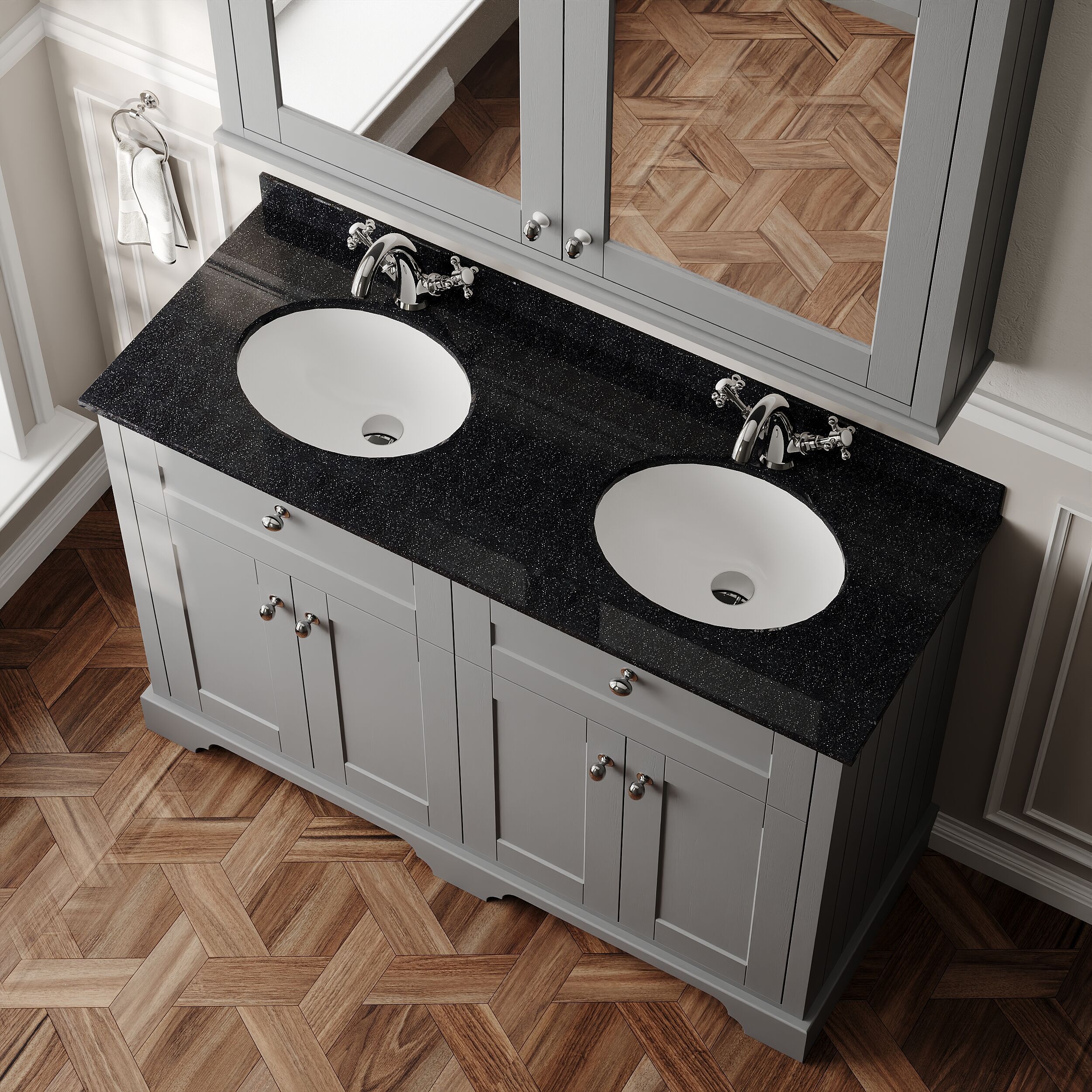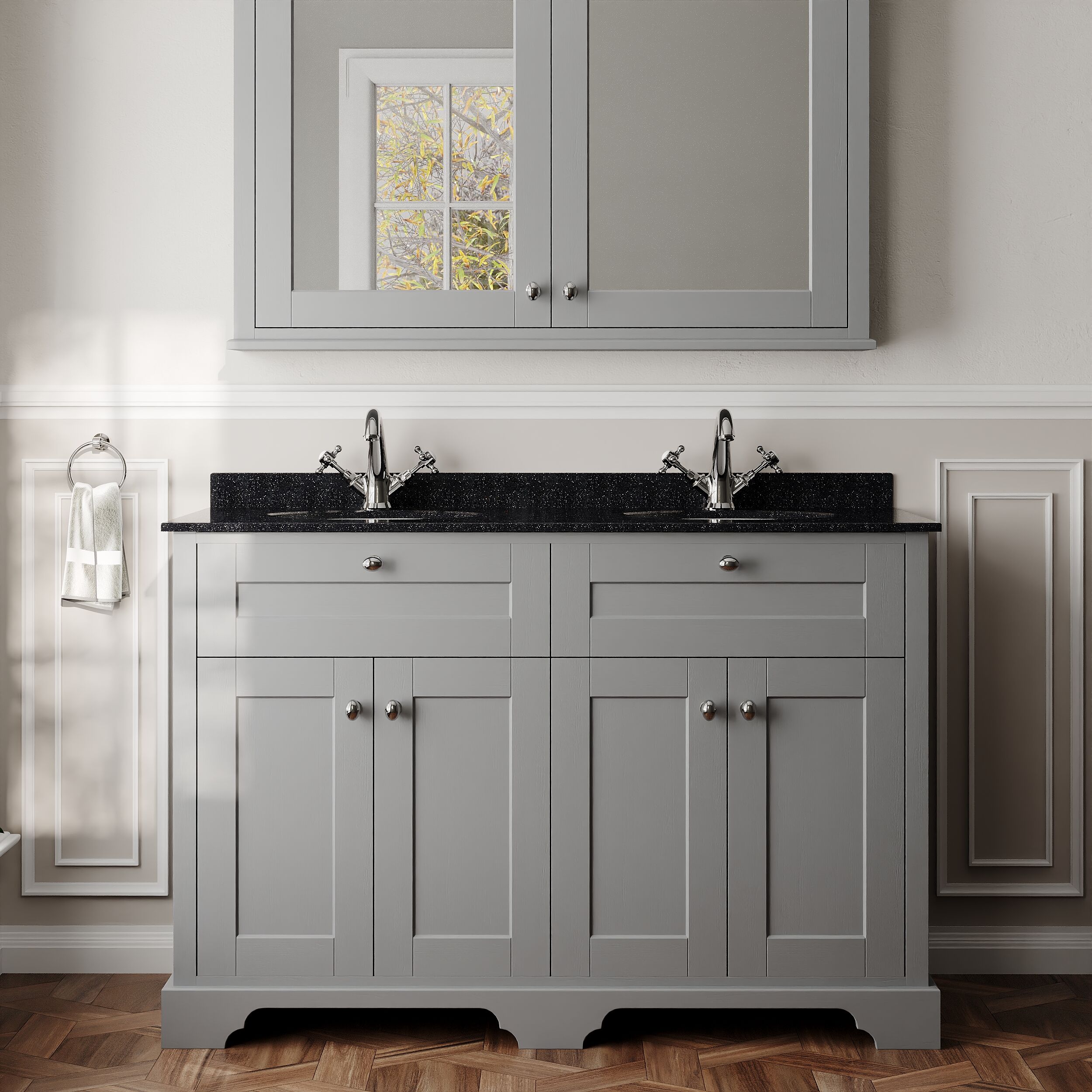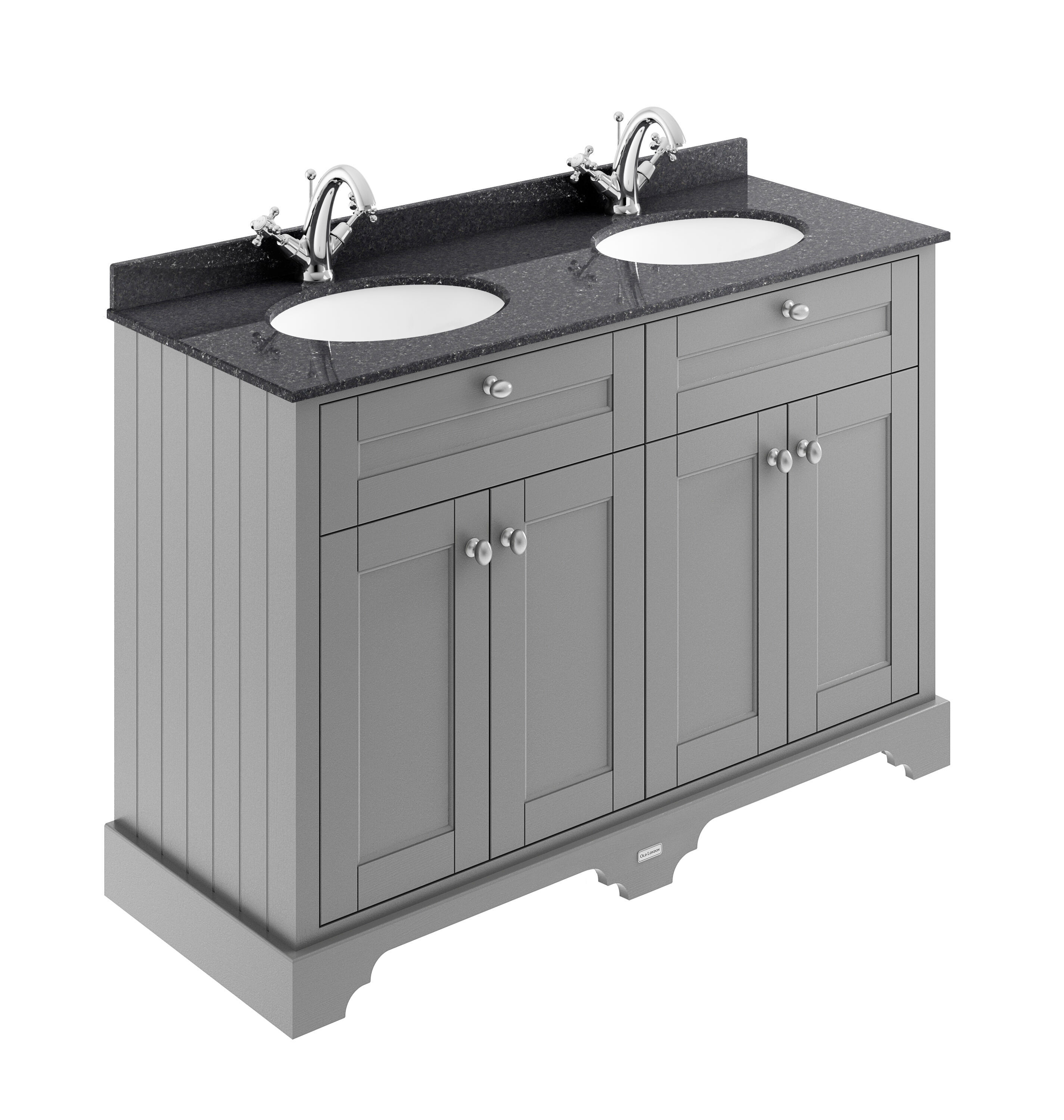 Hudson Reed Old London 1200mm Storm Grey 4 Door Double Basin Vanity Unit With Black Marble Top